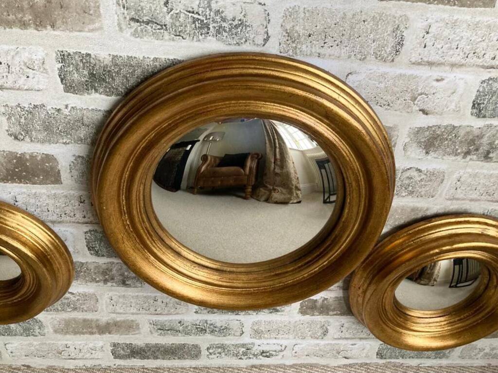 34cm Gold Convex Wall Mirror Porthole Fisheye Design