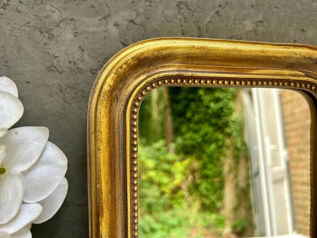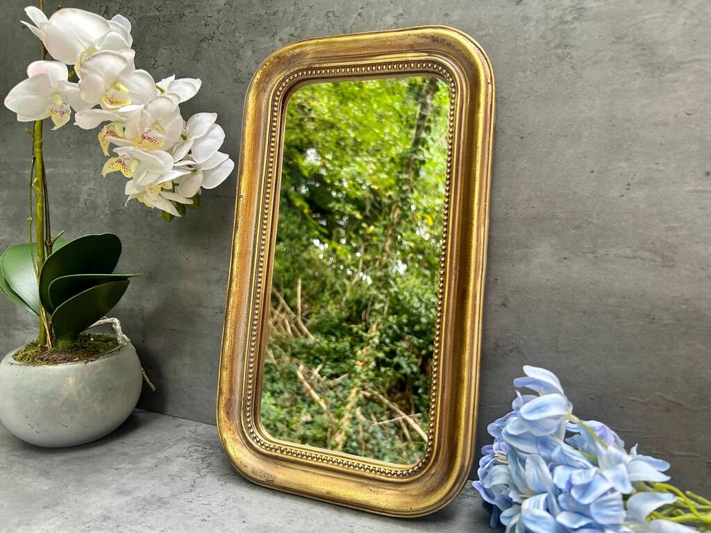Distressed Gold Portrait Mirror With Beaded Frame Decor