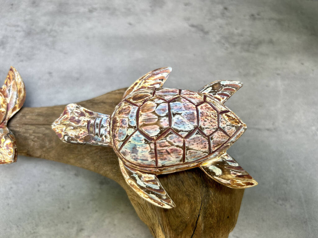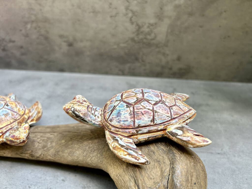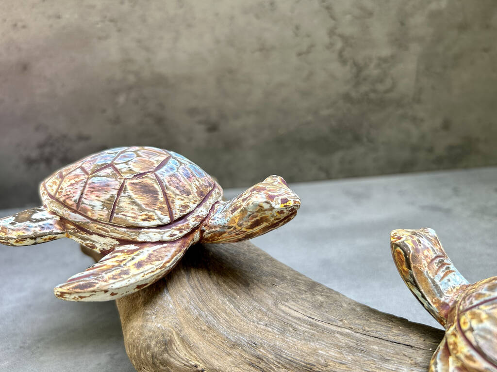 Due to the natural materials used and the turtles being hand painted each piece will be slightly different and 100% unique.