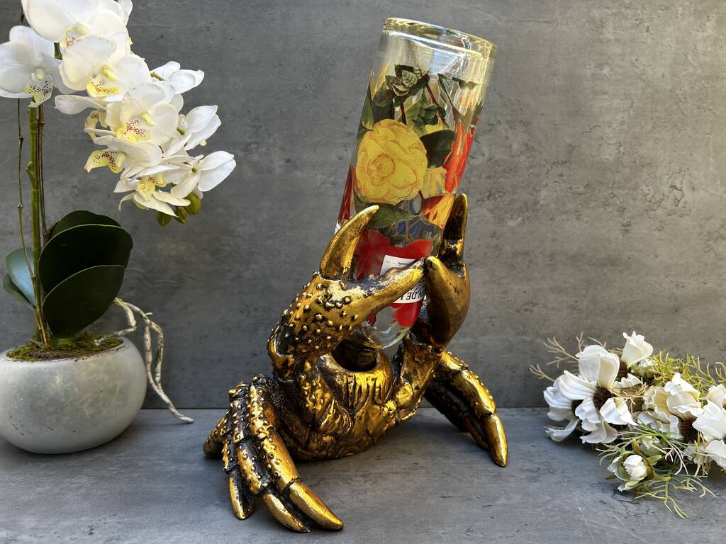 Drunken Crab Wine Bottle Holder Aged Gold Freestanding