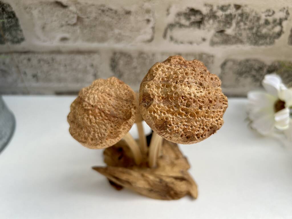 You will not receive an exact copy of the mushroom sculpture in the photos as wood is a natural product and each piece will differ in characteristics.