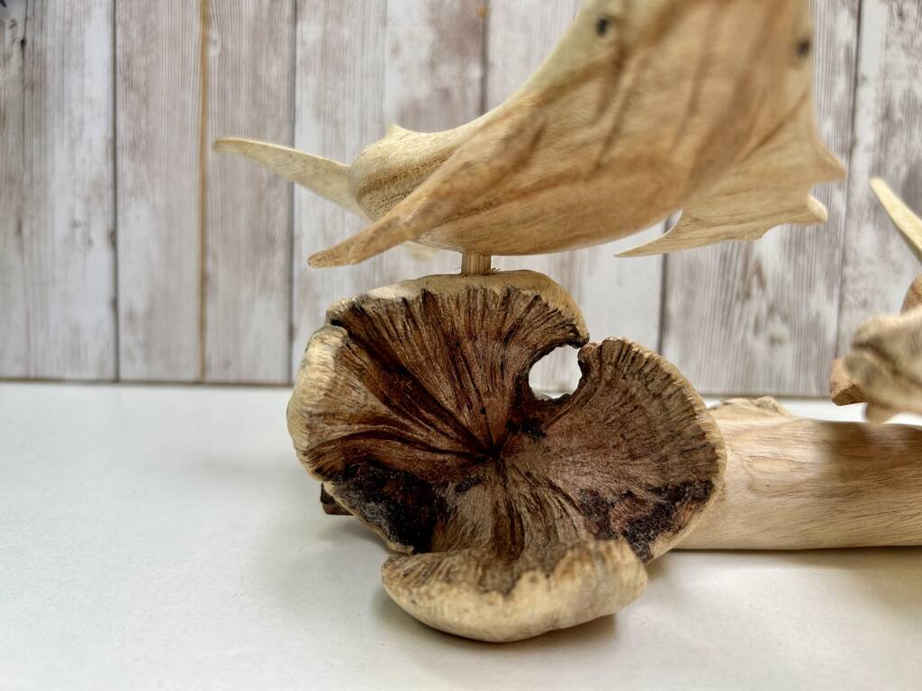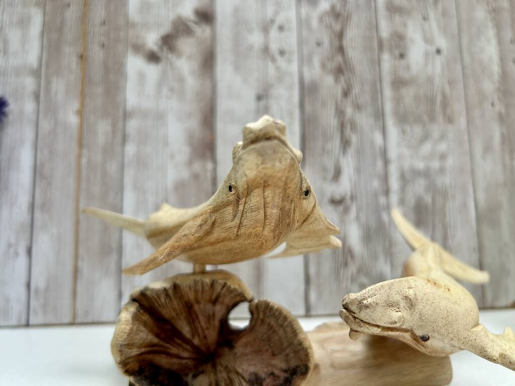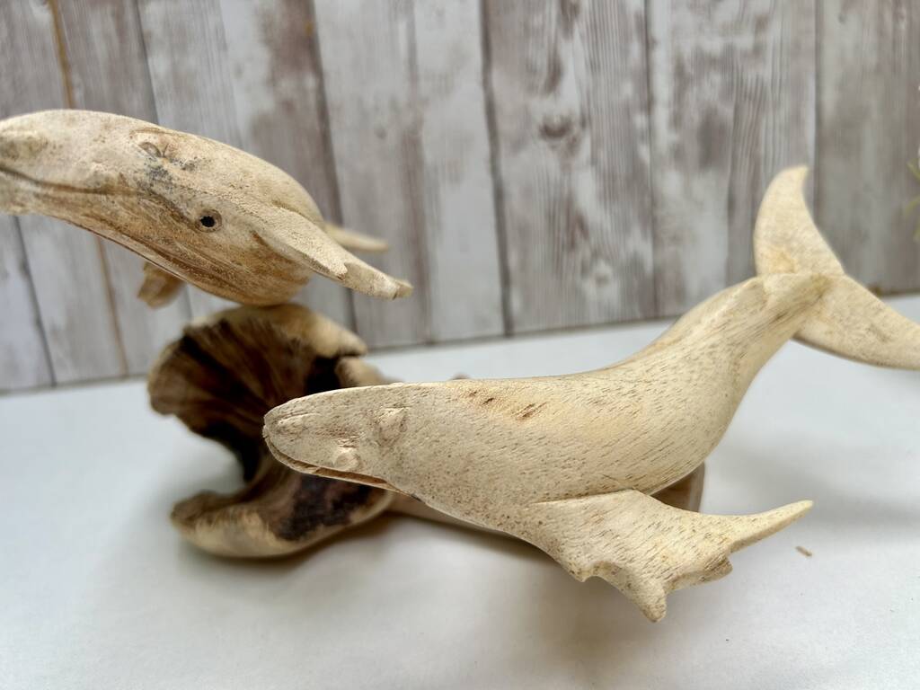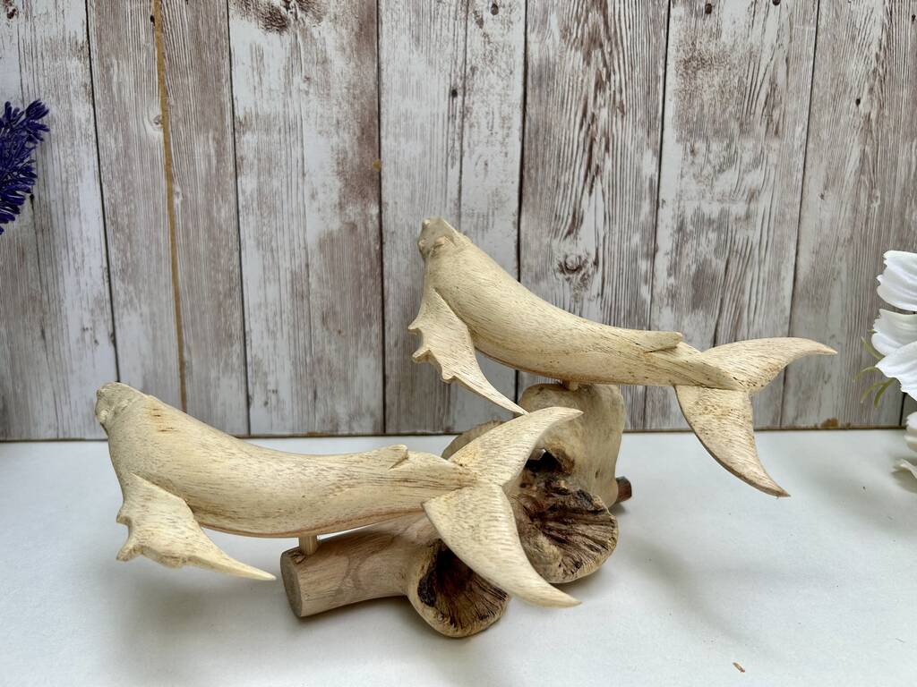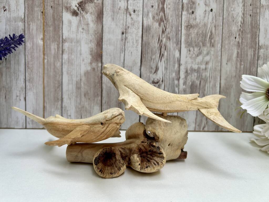 Hand Carved Wooden Whale Pair Sculpture Ornament