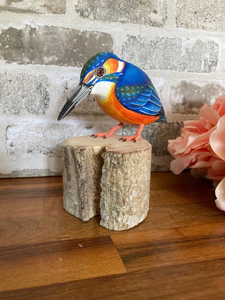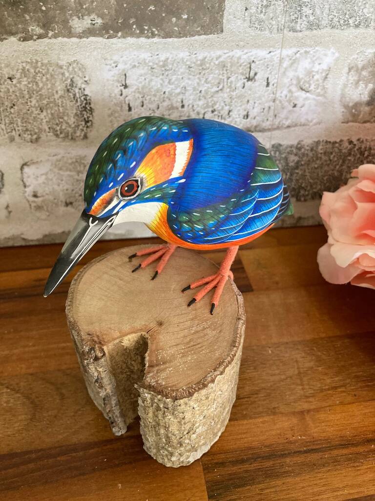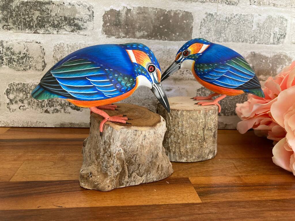 Hand Carved Wooden Kingfisher Bird Figurine Hand Painted