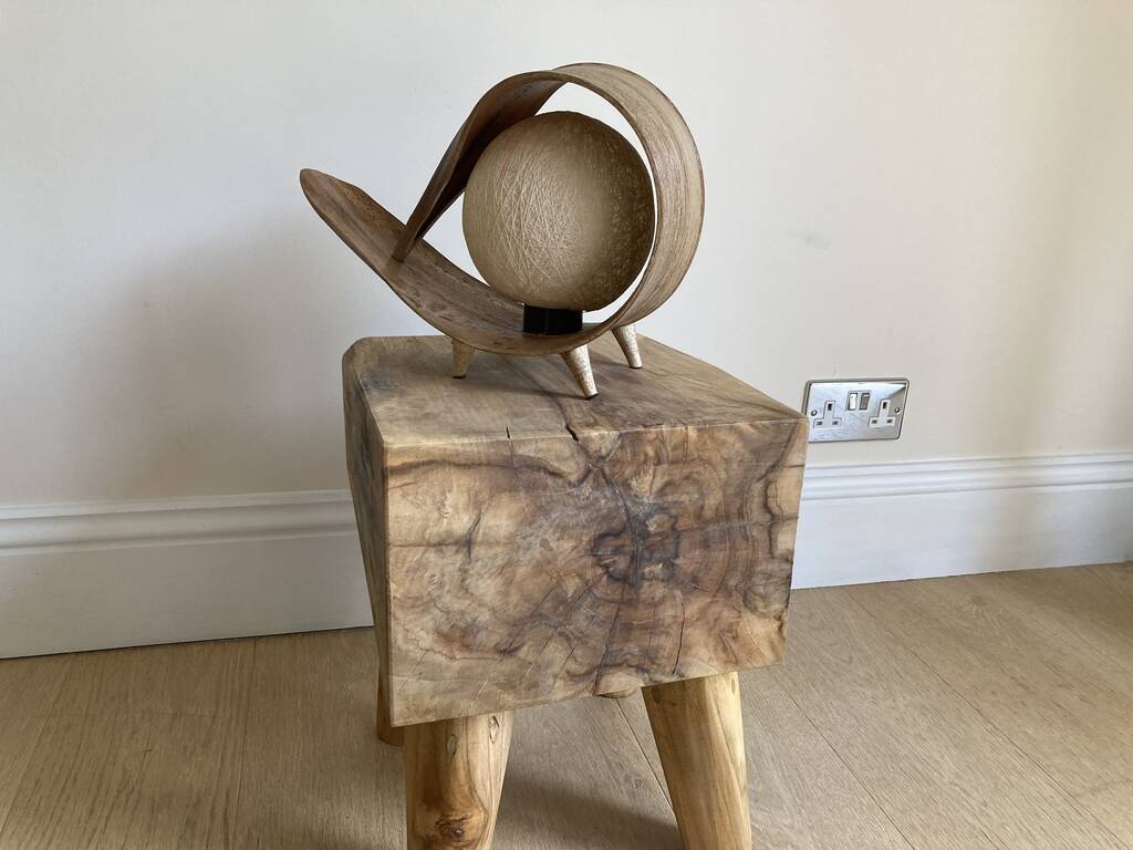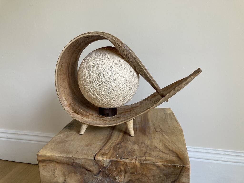 Handmade Coconut Leaf Table Lamp – Natural Cream Light