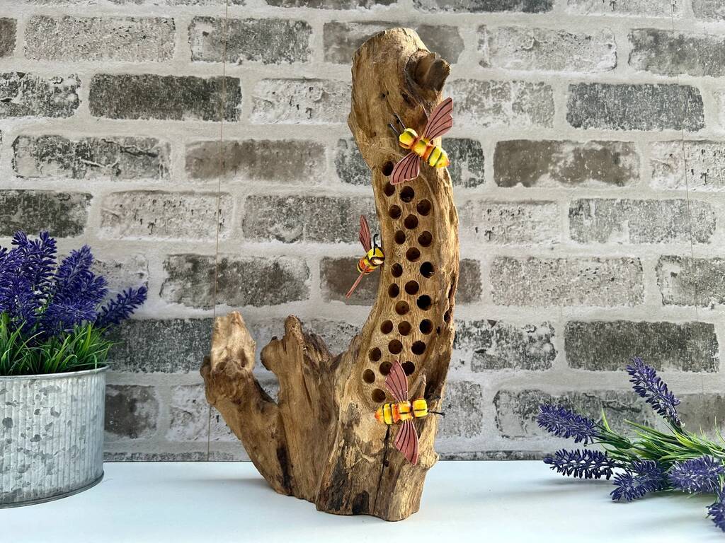 Handmade Wooden Beehive Bee Ornament Garden Sculpture