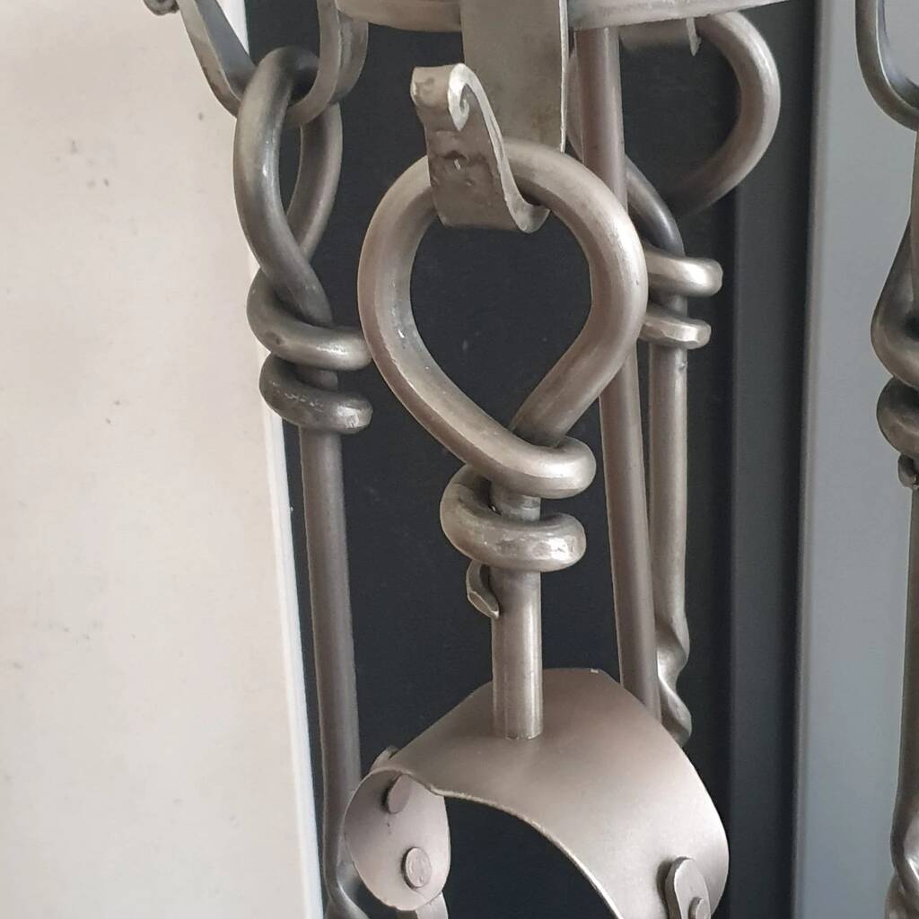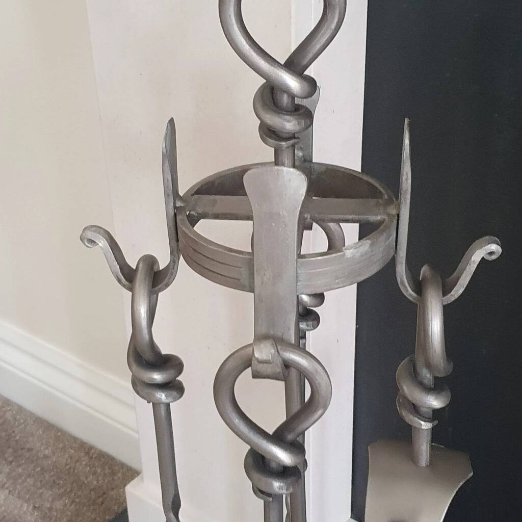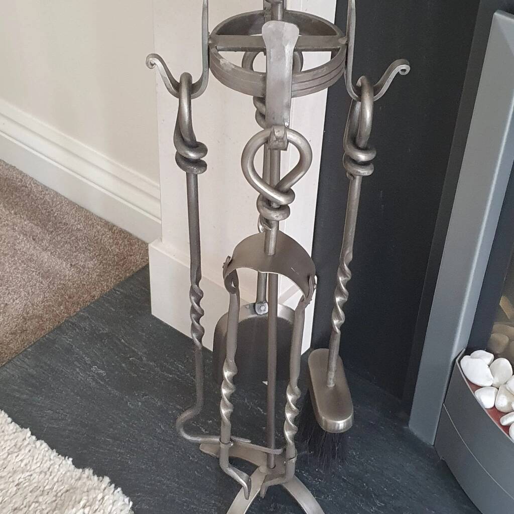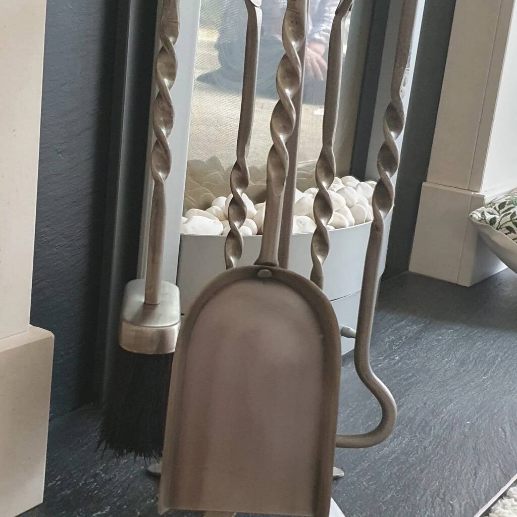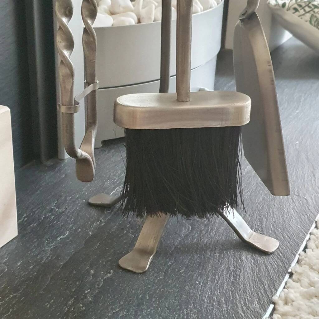 Heavy Pewter Five Piece Fireplace Companion Set Accessories