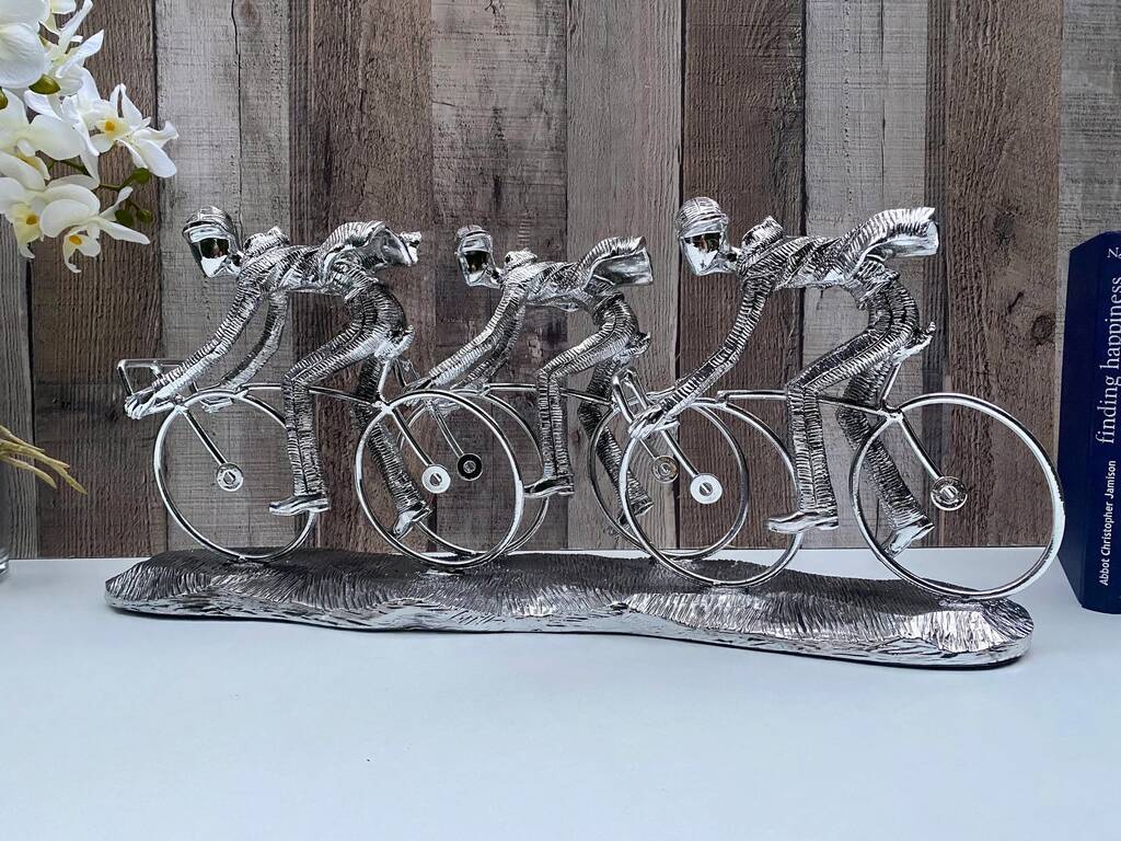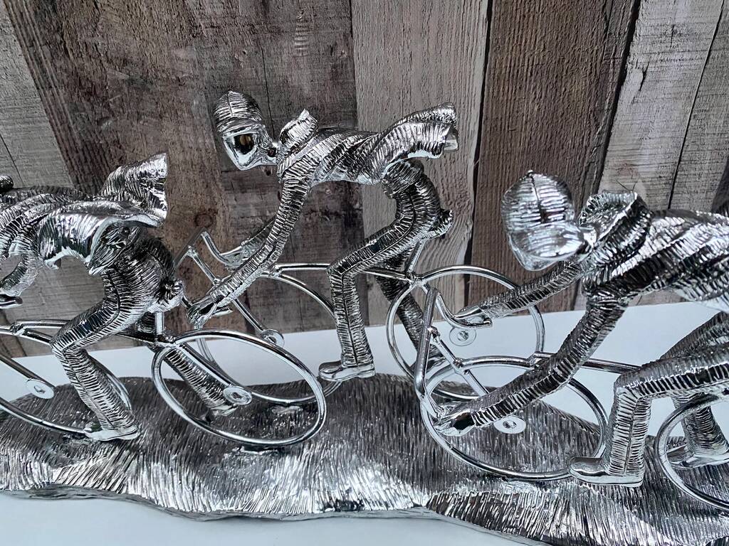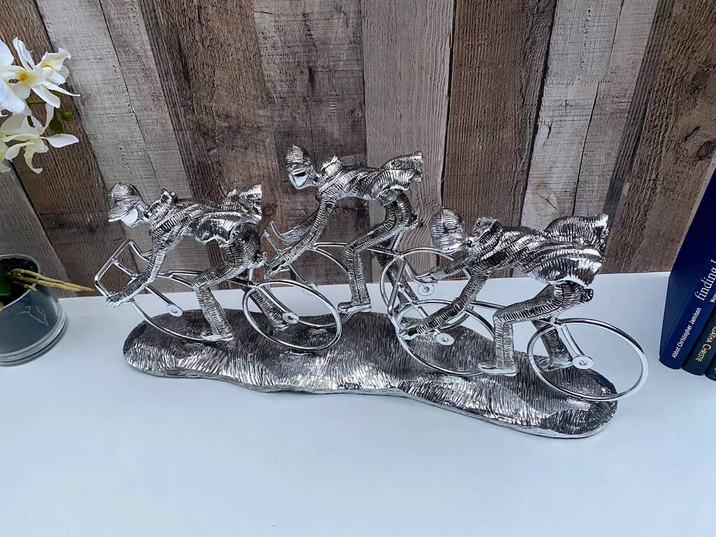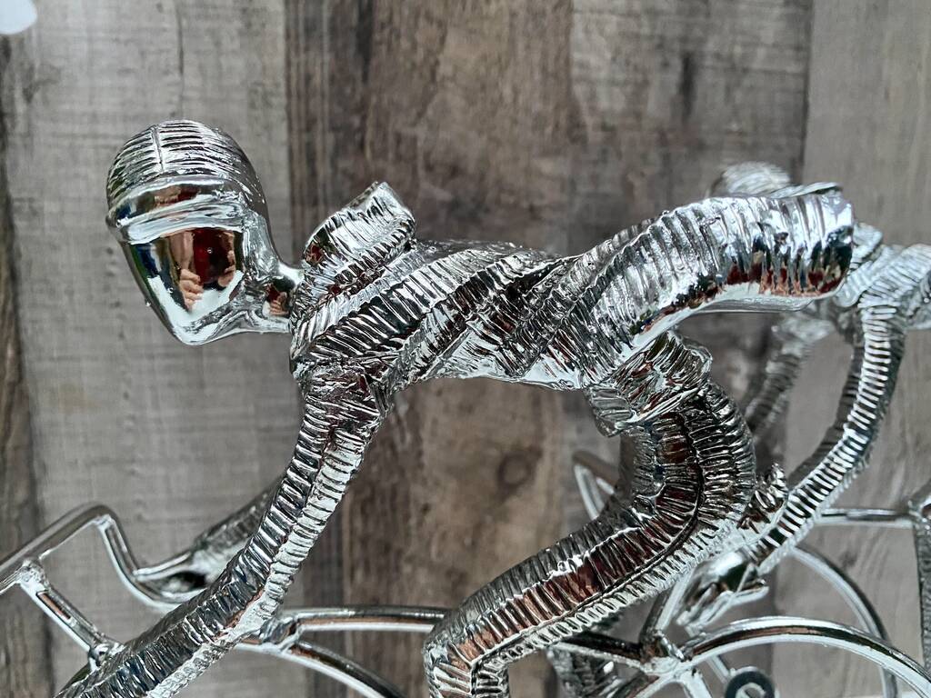 Huge 49cm Silver Cyclist Peloton Sculpture Sleek Cycling Ornament