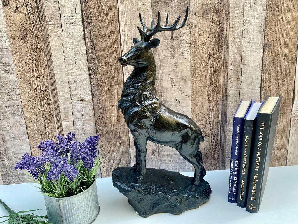 Large 41cm Stag Figurine Black And Brown Deer Ornament