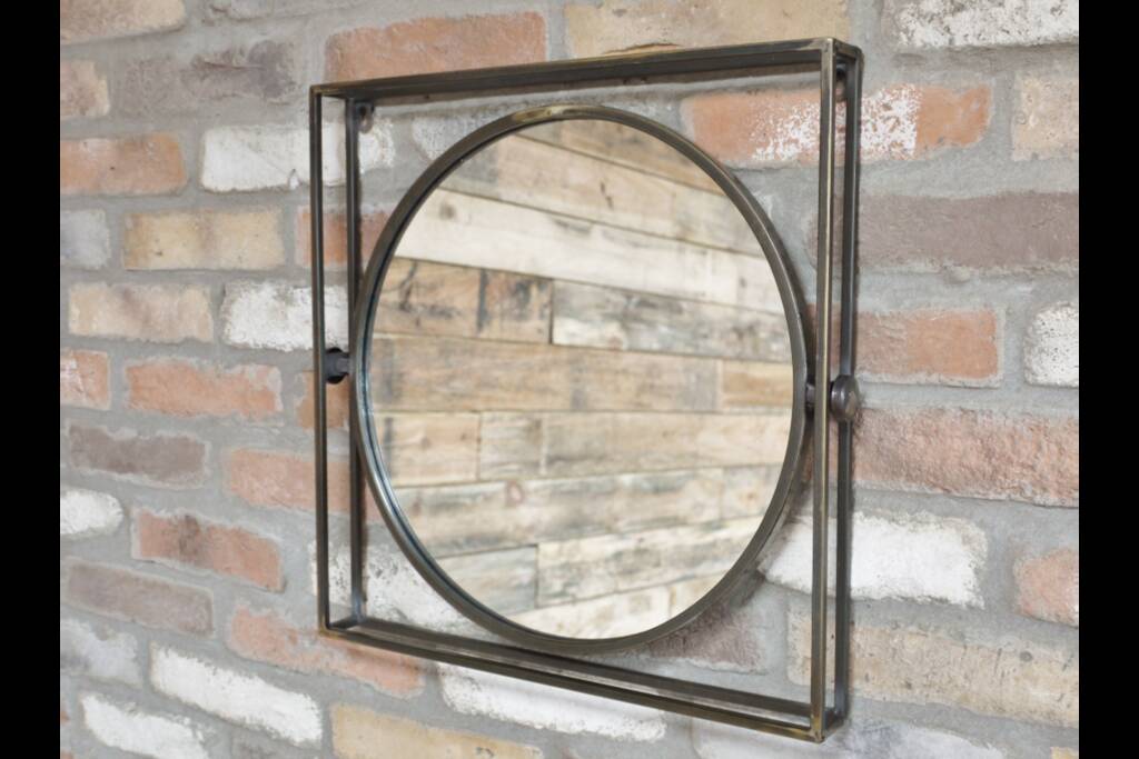 Large 47cm Industrial Metal Wall Mirror Bronzed Finish