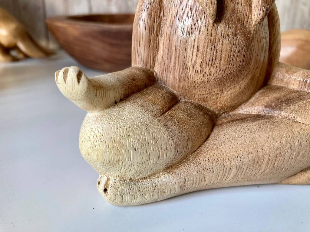 The wood has a two tone appearance and the grain will vary from almost white to a deep brown which makes each bunny 100% unique.
