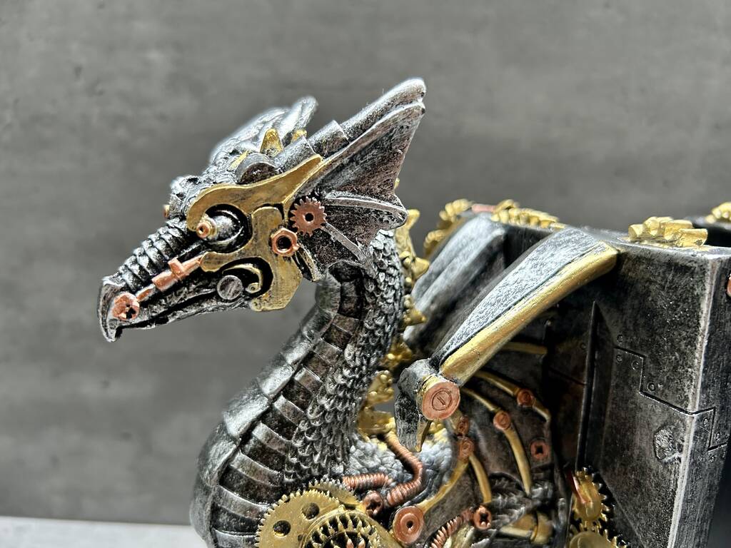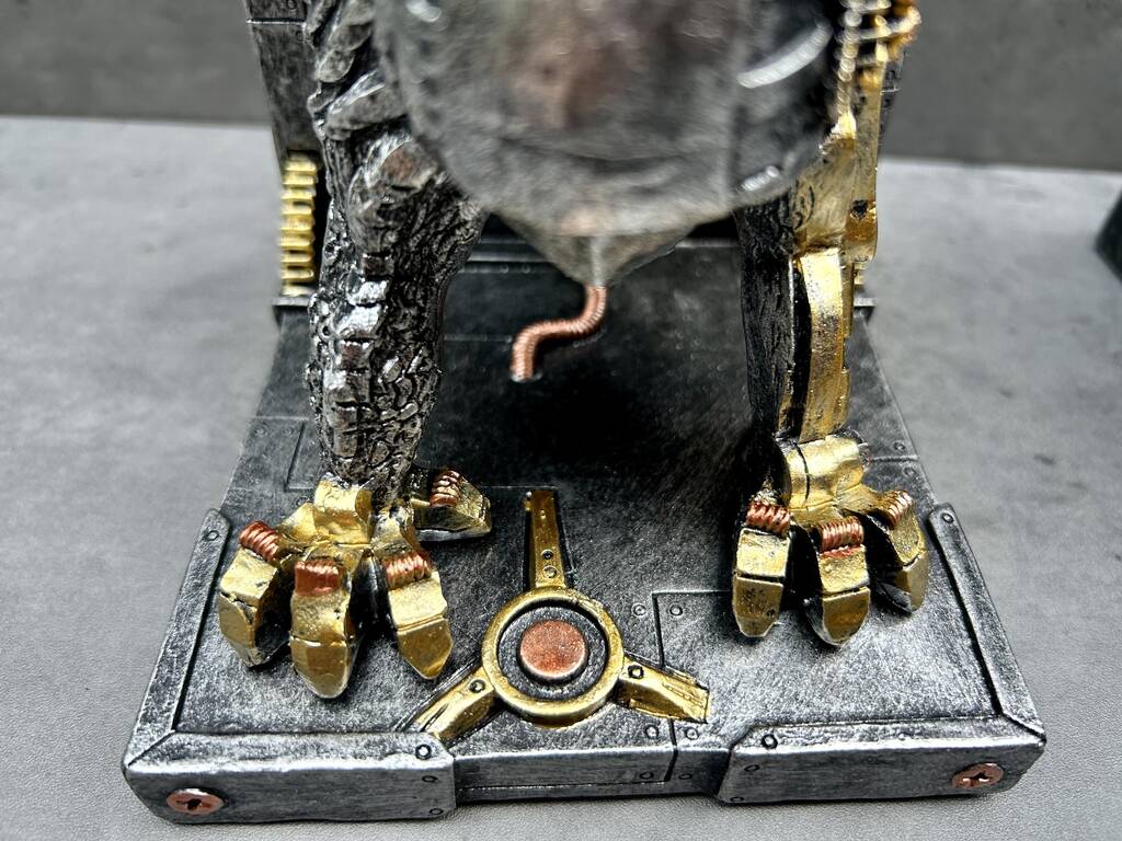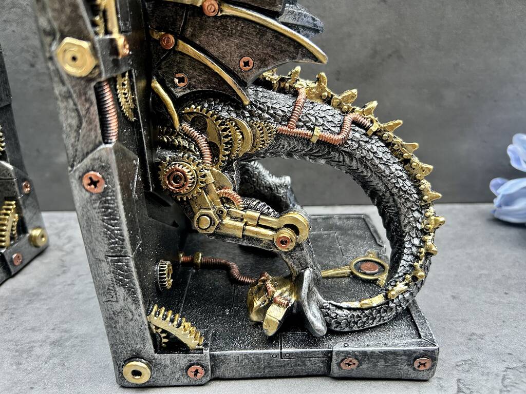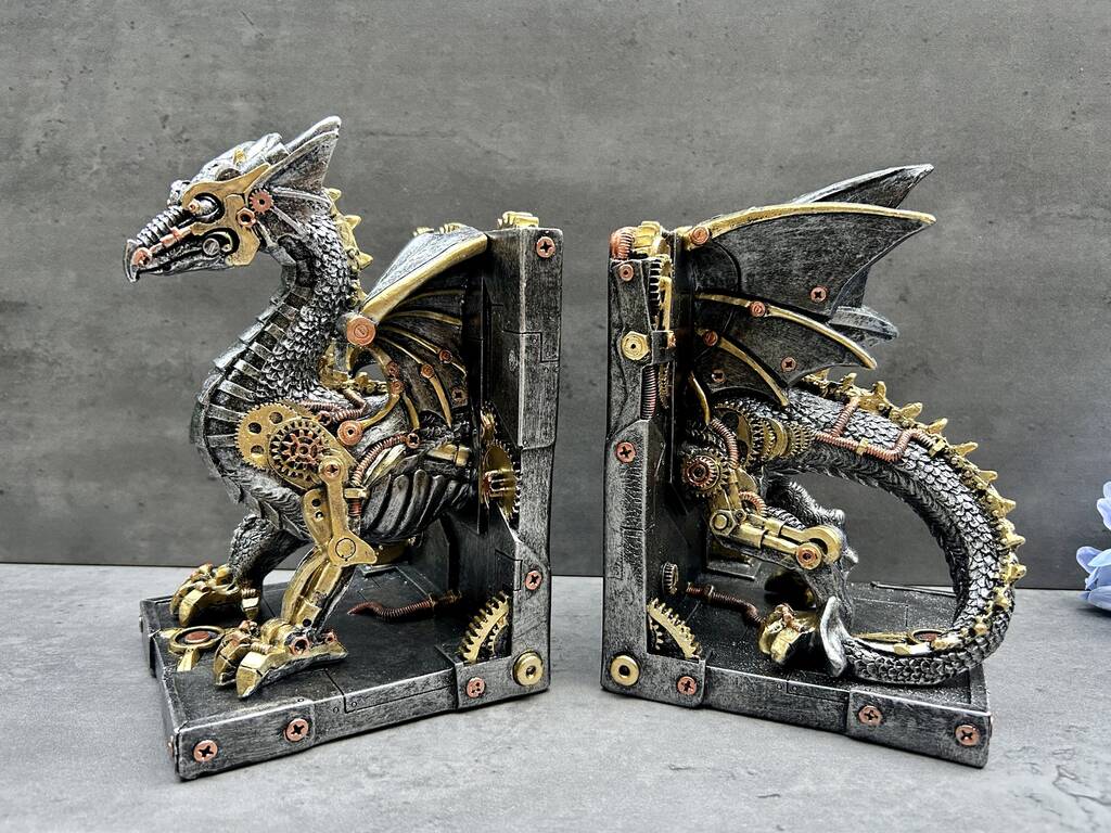 Pair Of Steampunk Dragon Bookends – Silver And Gold Retro