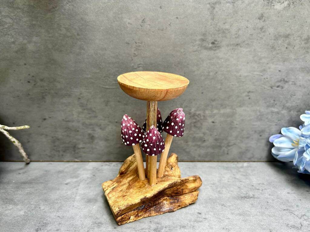 Purple Mushroom Candle Holder Teak Root Toadstool Gift