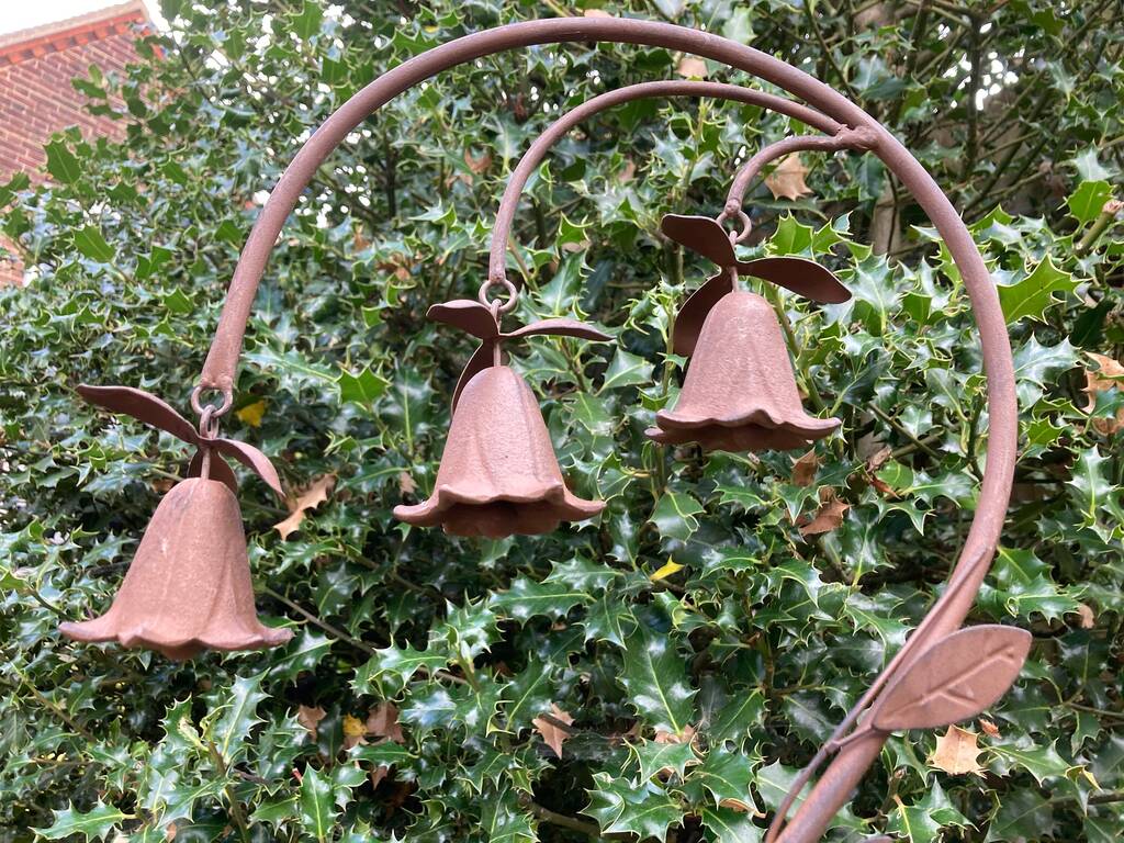 Tall One.15m Metal Garden Crook Rusty Brown With Bells