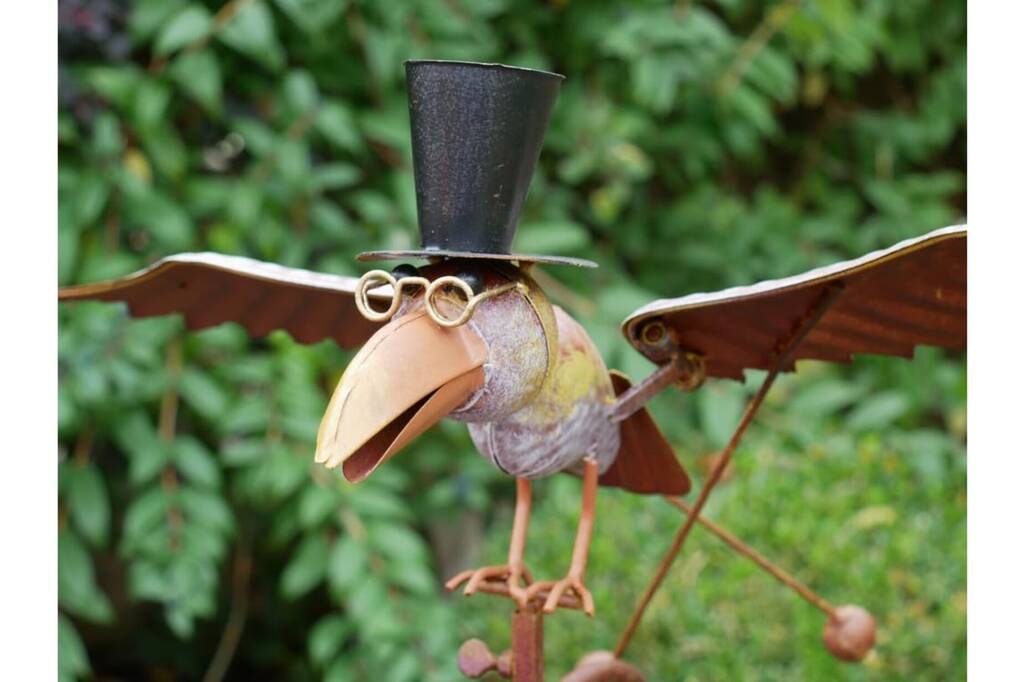 Toucan Top Hat Garden Wind Spinner One.37m Rusty Metal