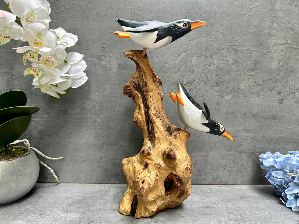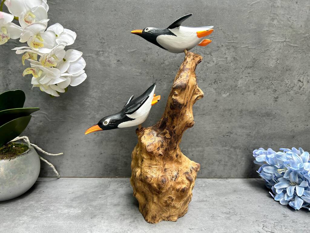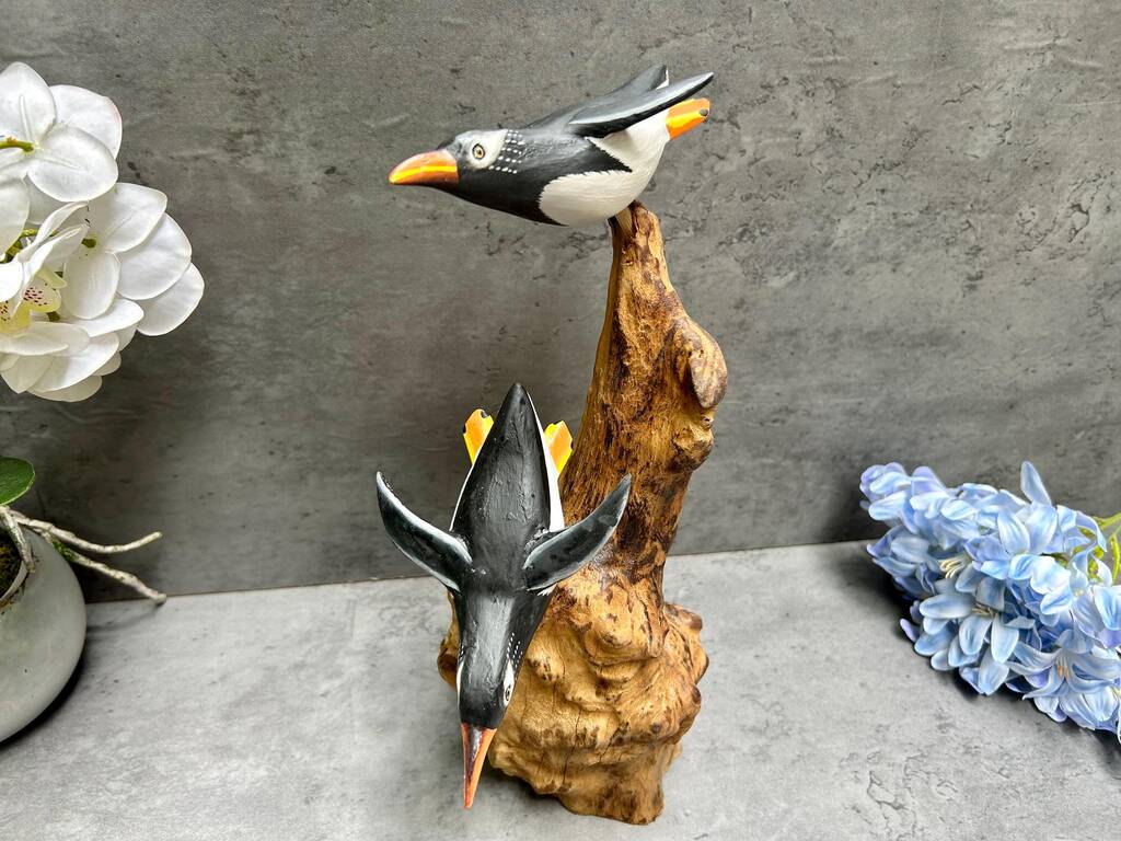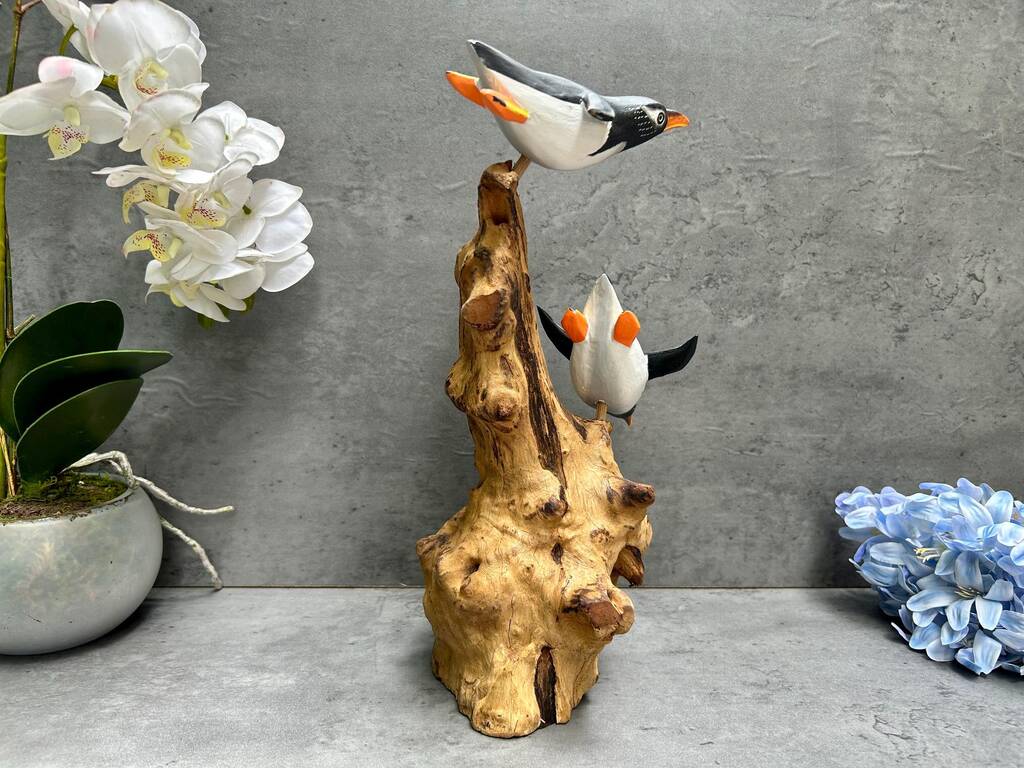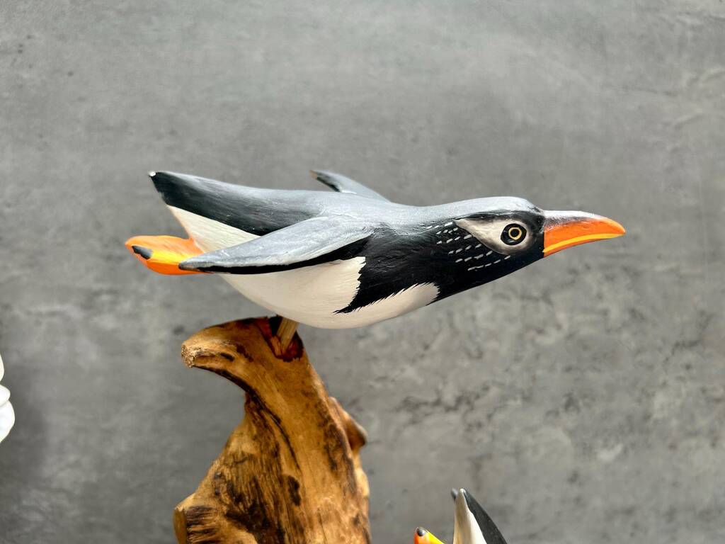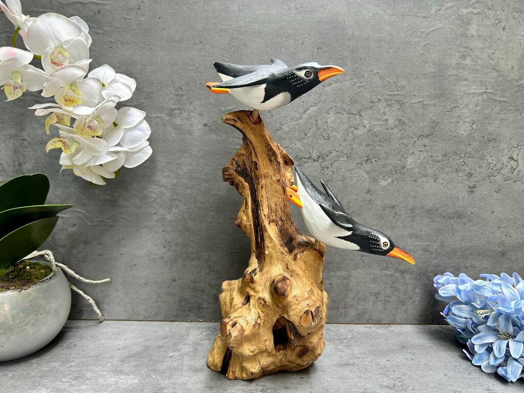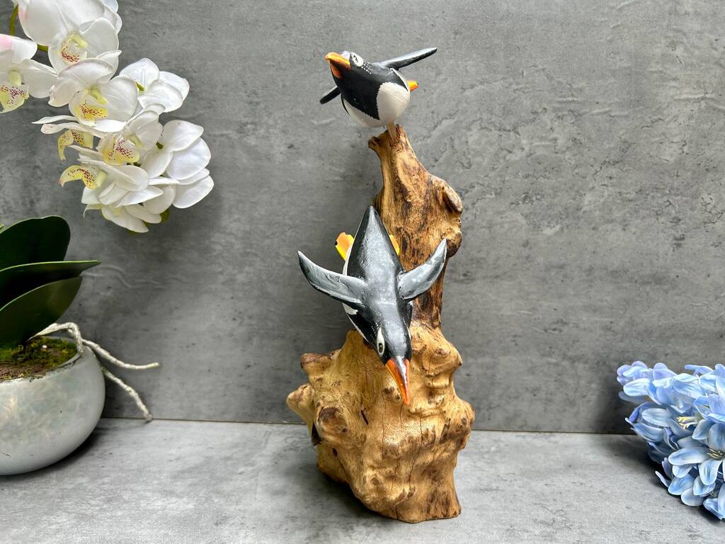 Wooden Penguin Ornaments Hand Carved Penguins Sculpture
