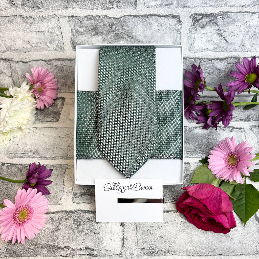 Dark Green Woven Wedding Tie Set, 1 of 6