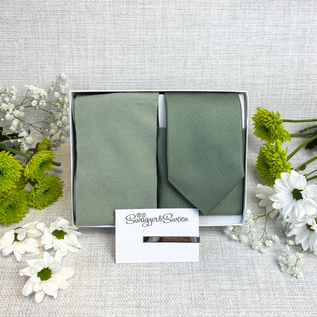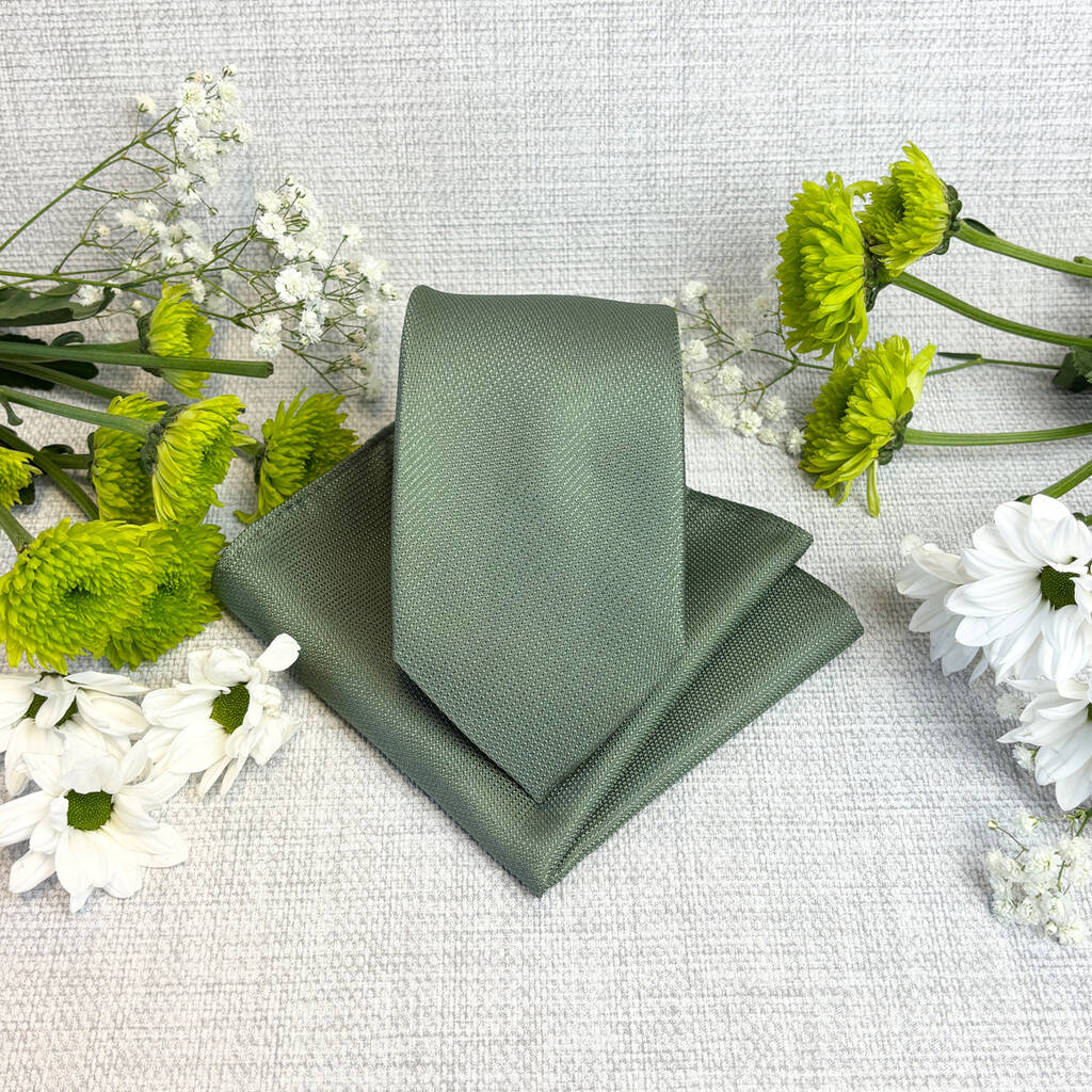 Dark Sage Textured Wedding Tie Set, 1 of 6