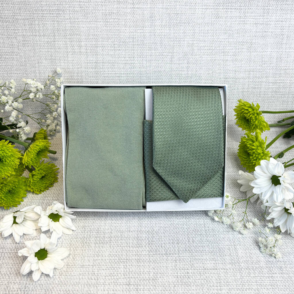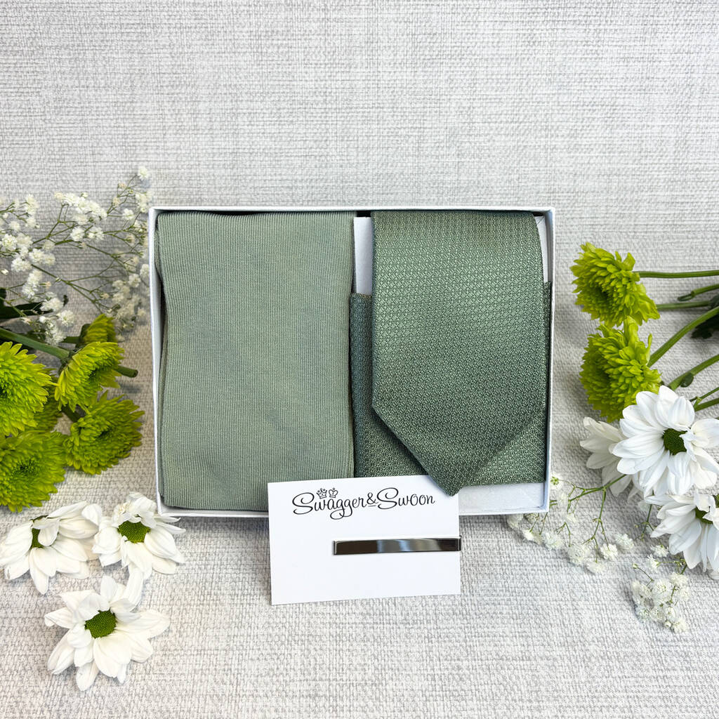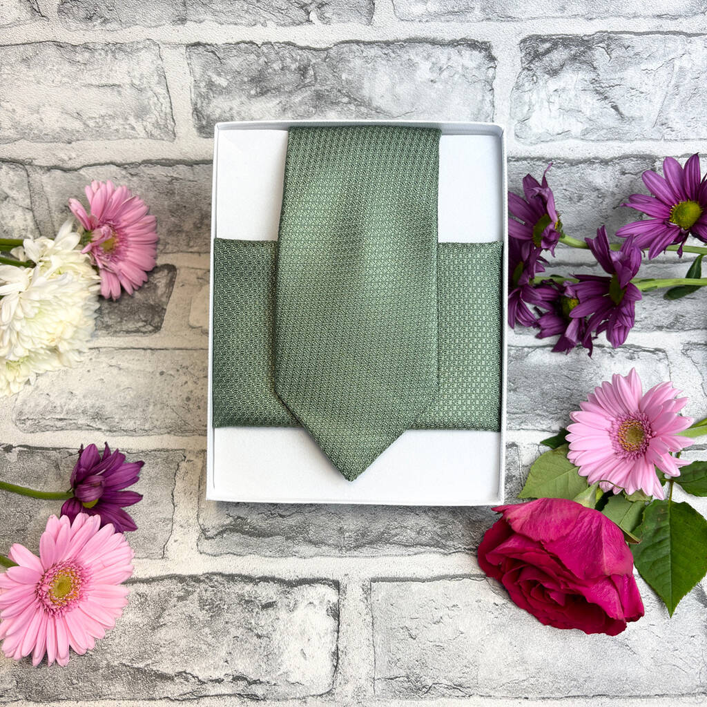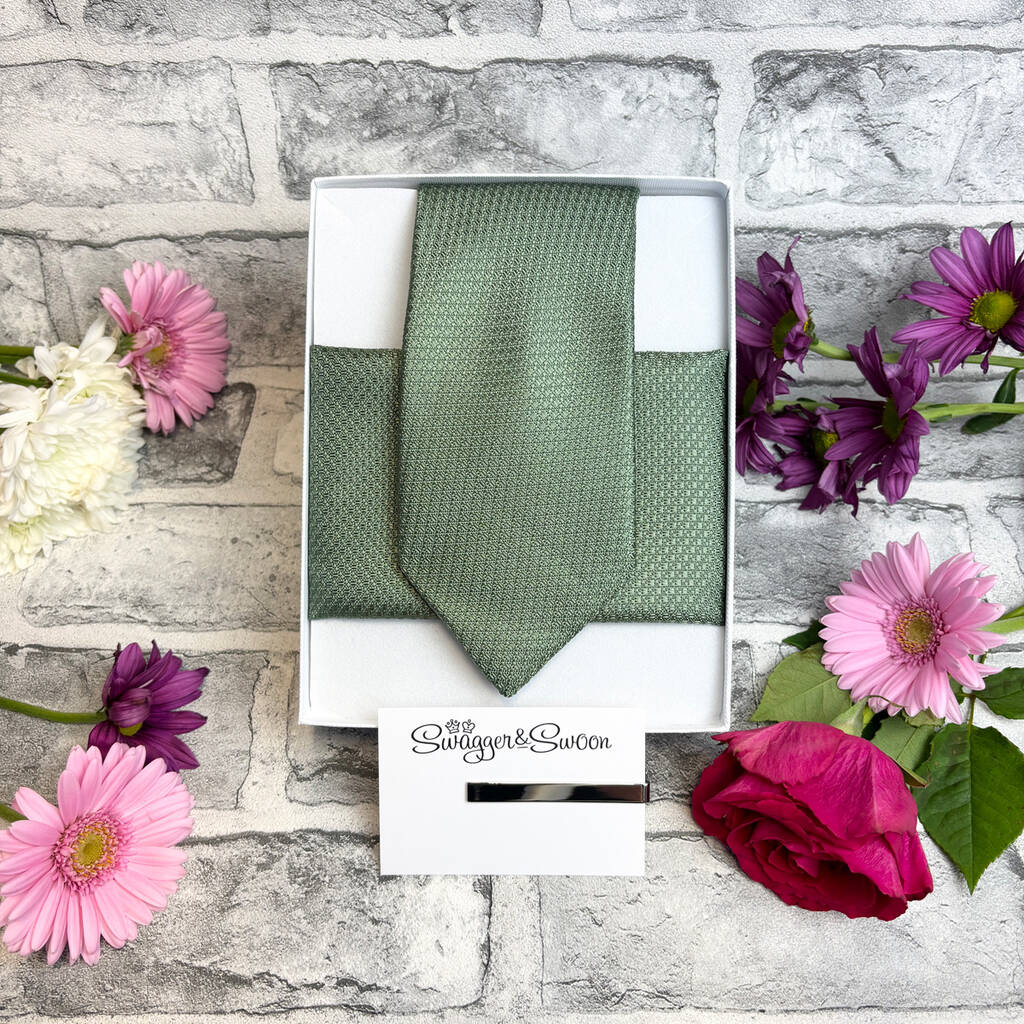 Dark Sage Woven Wedding Tie Set, 1 of 6
