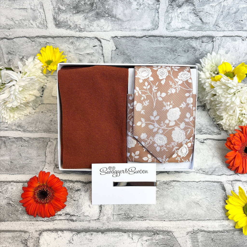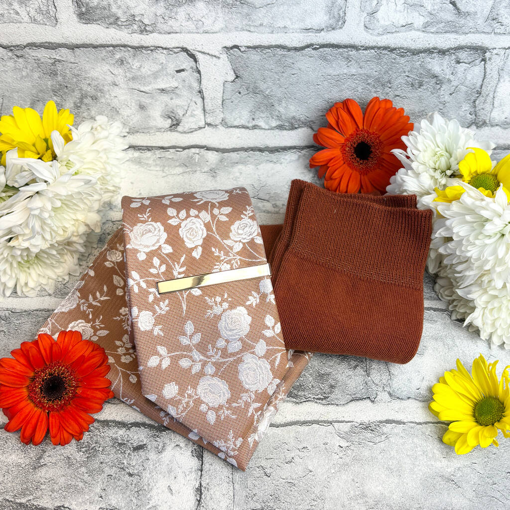 Coordinated wedding accessory set, hand-assembled in the UK. Includes a perfectly matched tie and pocket square, with cufflinks and socks for a stylish wedding look.Create a polished, perfectly coordinated look for your wedding day with this premium accessory set. Each piece is colour-matched for a seamless finish, making it ideal for grooms, groomsmen and ushers. Hand-assembled and finished in the UK, it offers the ease of a ready-made set with the craftsmanship of a personalised touch. With classic styling and a modern colour palette, it’s designed to complement your suits, bridesmaids’ dresses and overall theme beautifully. A thoughtful gift and an effortless way to elevate your wedding style.
