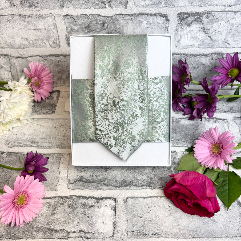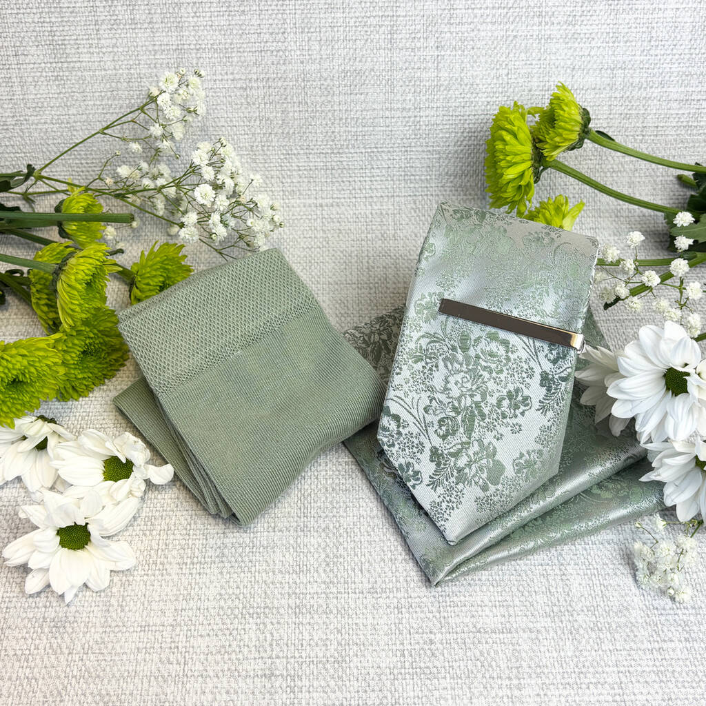 Wild Sage Floral Wedding Tie Set, 1 of 6