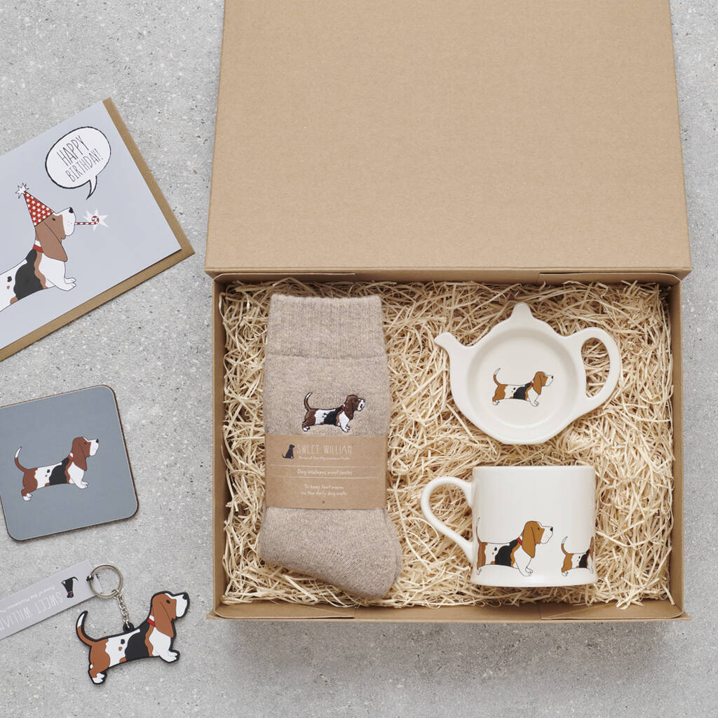 Create the perfect gift set by combining the mug with our matching Basset Hound socks, keyring, bookmark, coaster and greeting cards. There’s also the option to add a sturdy kraft gift box - ideal if you’re ordering two or more items and want a present ready to give.