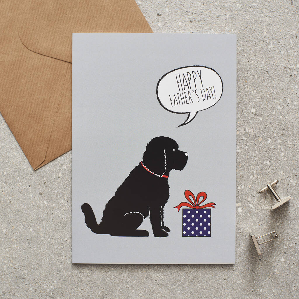 A charming Black Cockapoo / Labradoodle Father’s Day card, perfect for celebrating a devoted dog dad, with thoughtful optional extras available to make him smile.