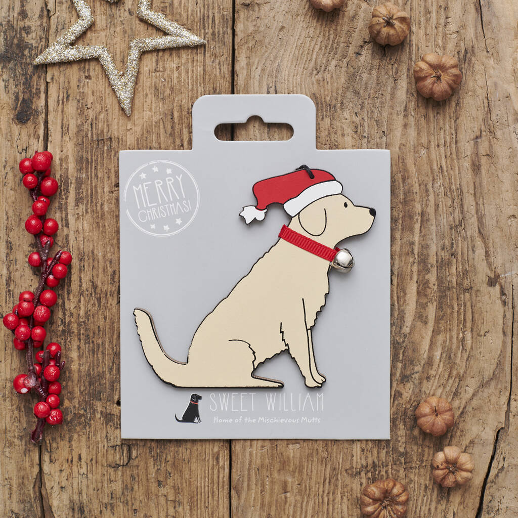Christmas Golden Retriever Dog Pin Badge, 1 of 12