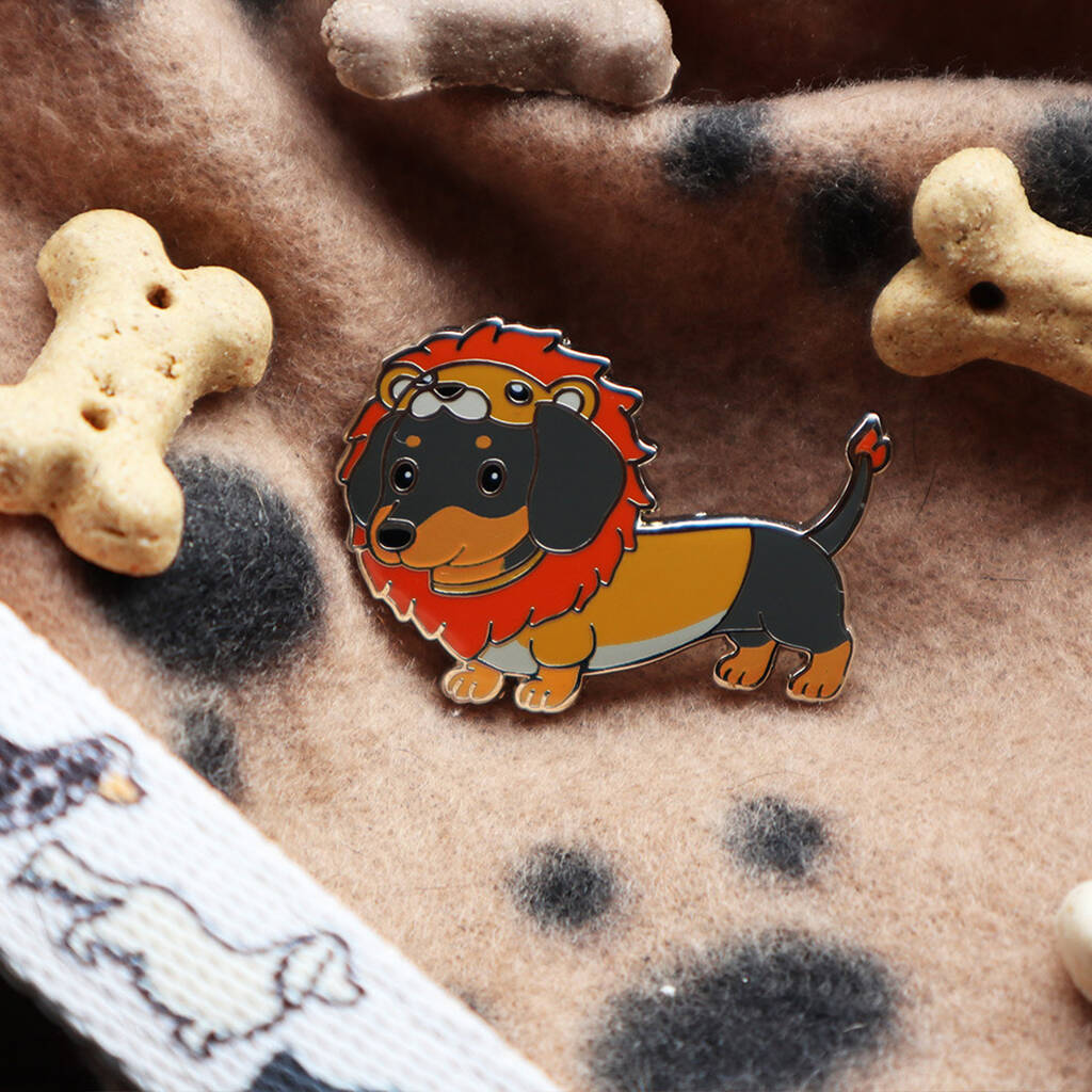 Black And Tan Mini Dachshund Lion Costume Enamel Pin