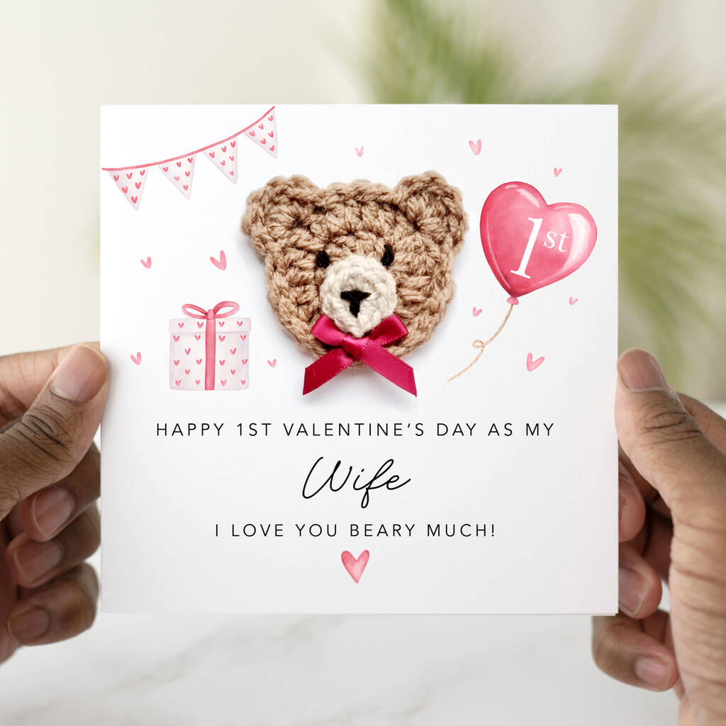 Make this Valentine's Day extra special with this adorable crochet bear card for your Wife on your 1st Valentine's Day Married.