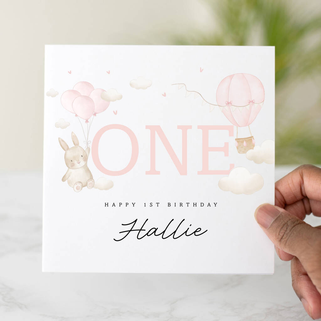 A cute personalised 1st Birthday card for baby girl. It's a great addition for a keepsake memory box.