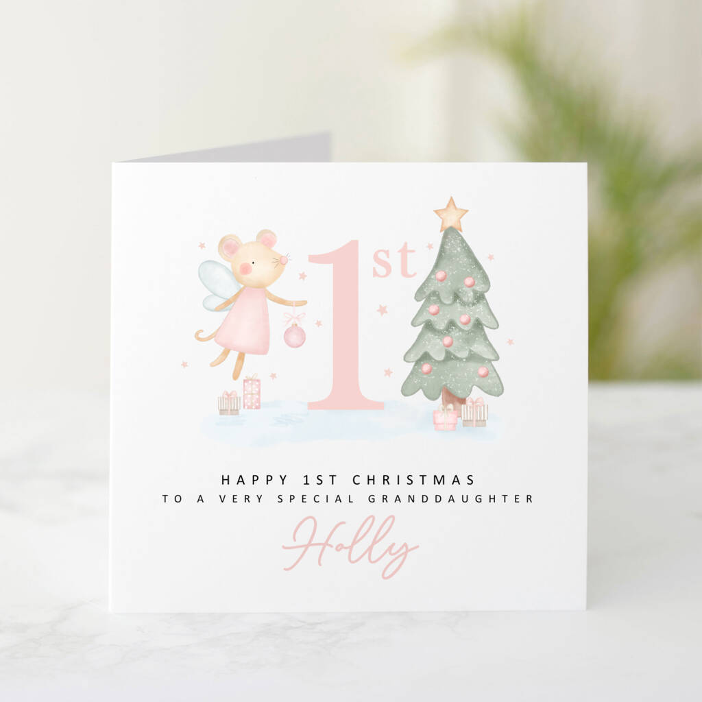 Share the festive spirit with this personalised 1st Christmas card for your Granddaughter.