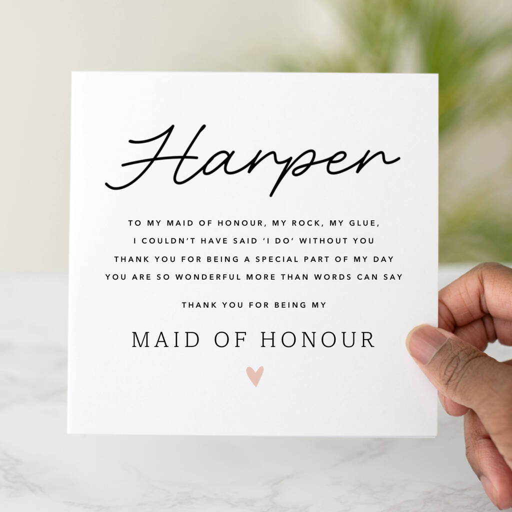 Send your wishes in style with this wonderful proposal card. The design is printed on 300gsm premium card, paired with an envelope. A thoughtful card to thank your Maid of Honour for being by your side.
