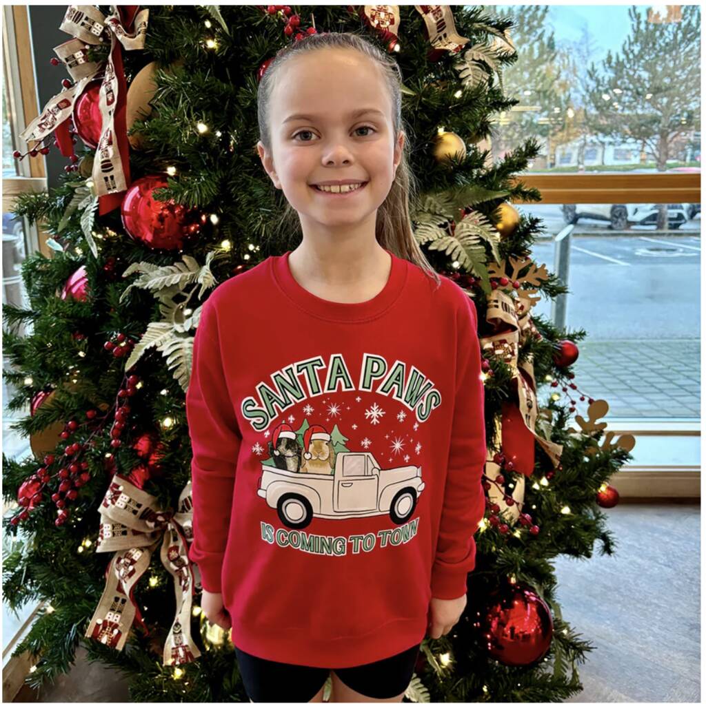 The perfect treat for your son, daughter or grandchildren this festive period. Delight them with this fun Christmas design of their favoutire pet on their sweatshirt. A must have for school this Christmas Jumper day.