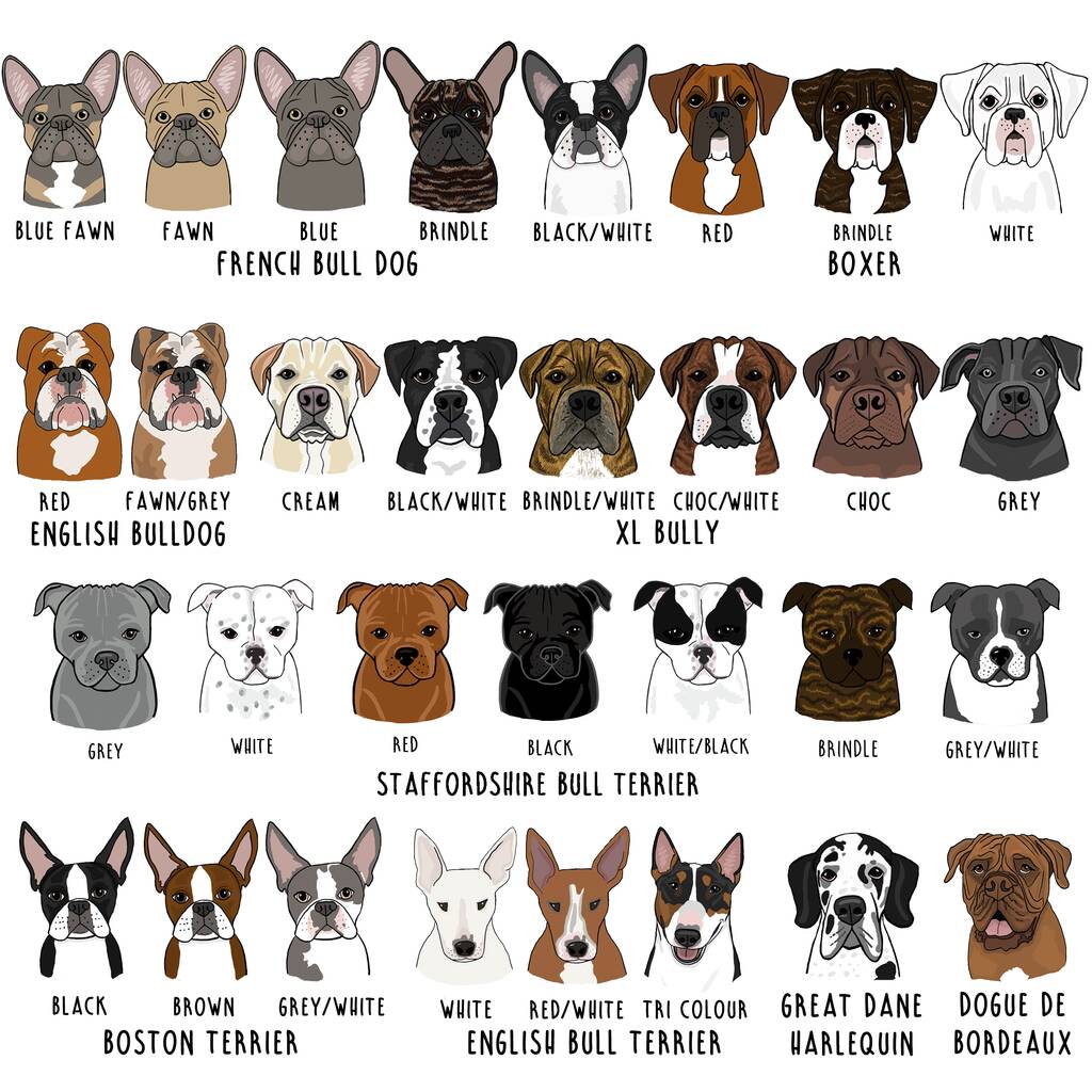 If you would like a bespoke design please message us to agree first. I will need a clear front facing colour photo of your dog for the design.
