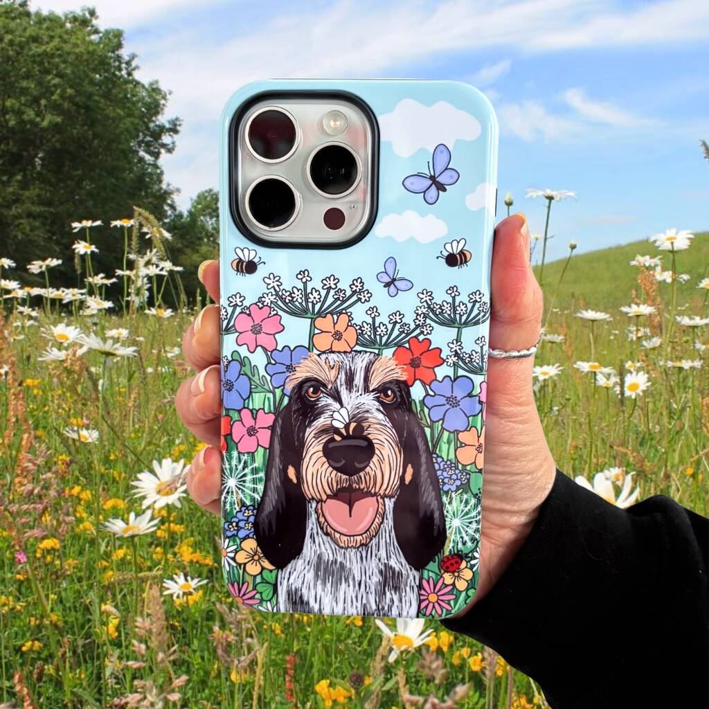 Capture every adventure with this beautiful personalised phone case featuring your dog against a stunning wildflower illustration—perfect protection with a personal touch.