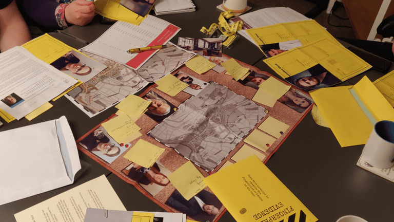3.Set up your murder board either on a flat surface or stuck to a wall or cupboard. This is your board and your map so you can mark them as you wish.