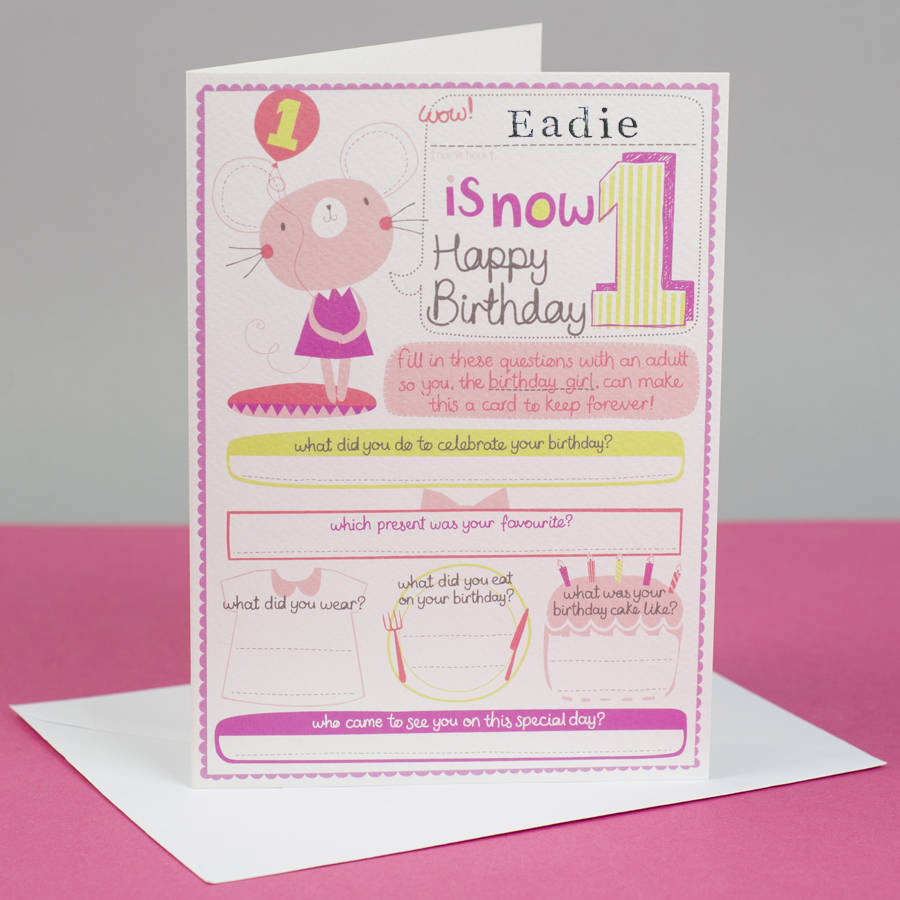 A 1st birthday is a precious day and this personalised 1st birthday card is the perfect keepsake for a little girl on her 1st birthday