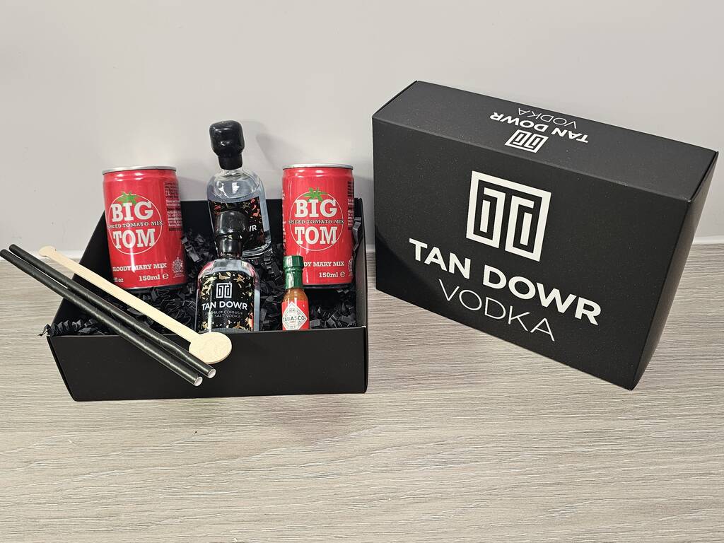 Each of our Kits is comprised of three main parts, our miniature Tan Dowr Sea Salt Vodka, Spiced Tomato Juice, and Tabasco pepper sauce miniature. In addition, each Kit includes: