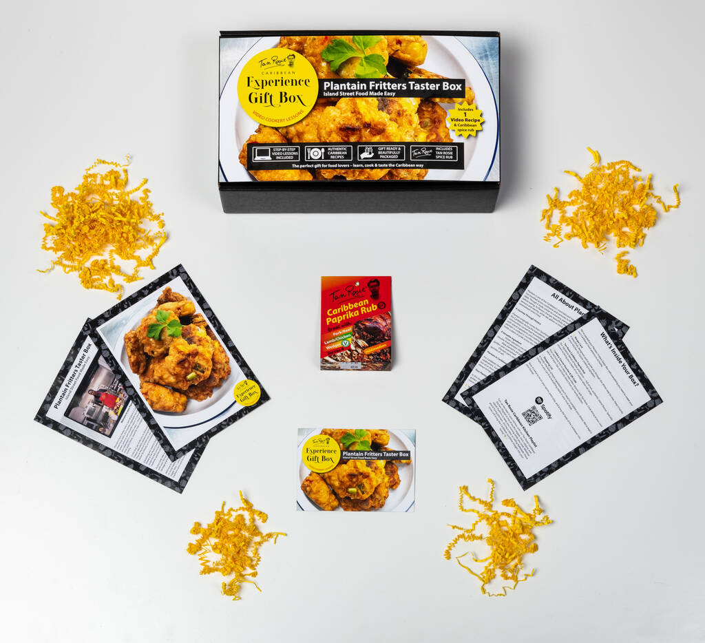 Bring the vibrant flavours of the Caribbean into your home with our Plantain Fritters Taster Box – the perfect foodie gift. Inside you’ll find authentic Tan Rosie Caribbean spice rub, a recipe card, and exclusive access to an online cookery lesson, guiding you step by step to make crisp, golden fritters, a beloved Caribbean street food. Beautifully packaged with ribbon and tissue, it’s ready to gift for Christmas, birthdays or thank-yous. Suitable for vegans, vegetarians and gluten-free diets, this unique box offers not just food, but an unforgettable Caribbean cookery experience – handmade in the UK by our family-run business.
