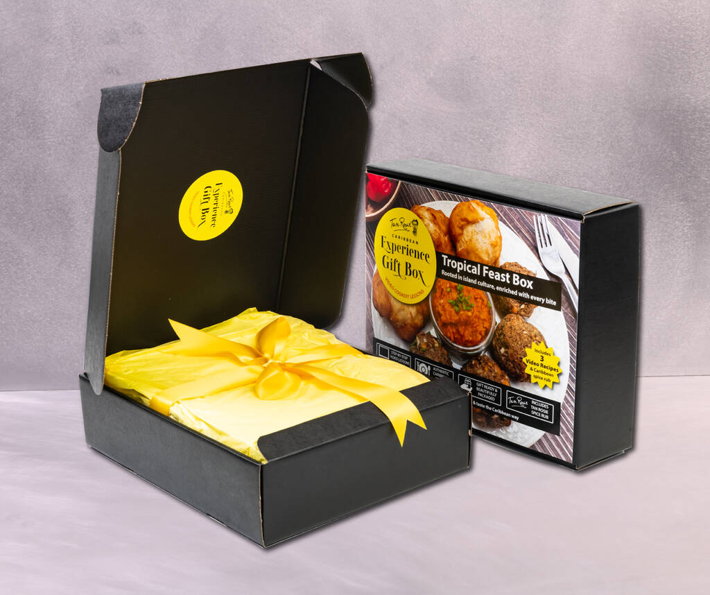 Transform your kitchen into a Caribbean celebration with the Tropical Feast Box. This beautifully packaged gift set includes everything you need to create a flavour-packed feast: smoky jerk chickpea balls, a creamy plantain & tomato dip, and golden fried dumplings. Each box comes with authentic Tan Rosie spice rub, recipe cards, and exclusive step-by-step video cookery lessons to guide you along the way. Gift-ready with ribbon and tissue, this unique foodie gift is ideal for Christmas, birthdays, or sharing a special meal with loved ones. Vegan-friendly, gluten-free, and full of soul — the Caribbean on your table.