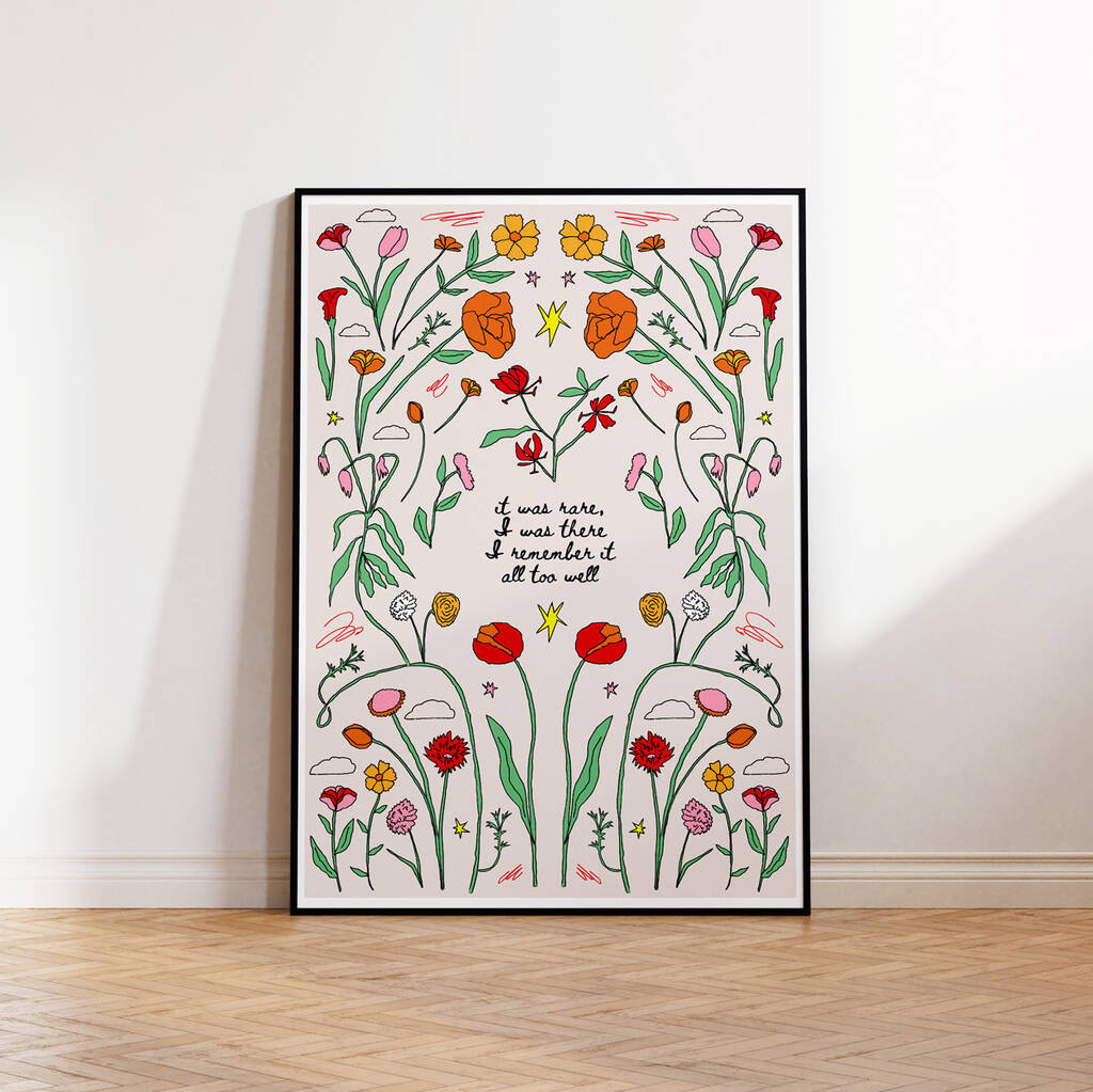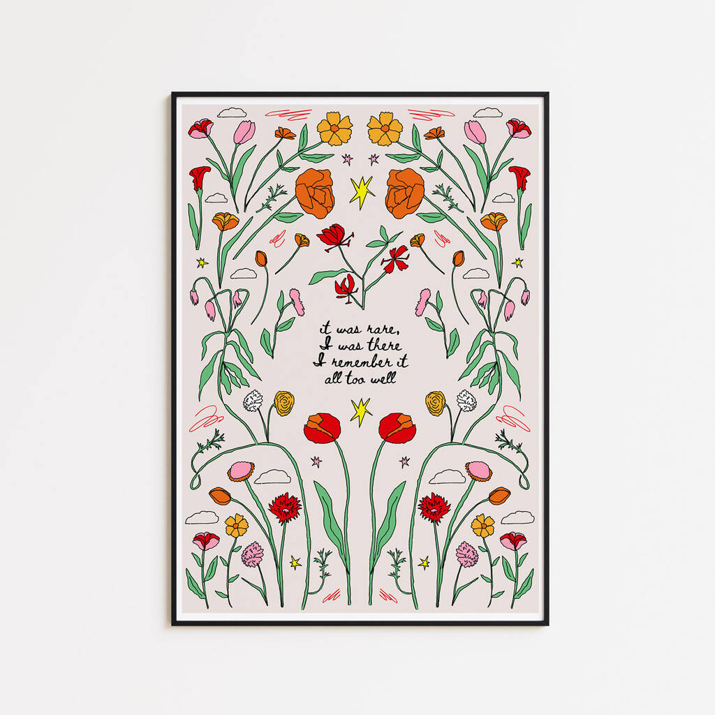 All Too Well 'It Was Rare, I Was There' Taylor Swift Typography And Flower Art Print