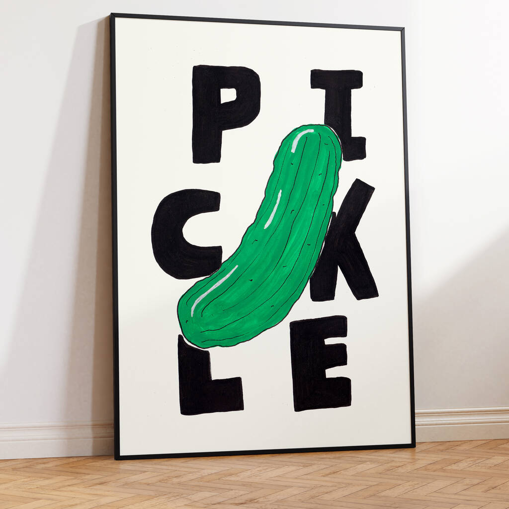 Green Pickle Hand Drawn Vegetable Illustration With Bold Typography Wall Art