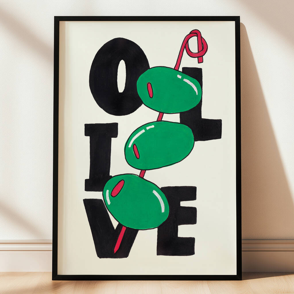 Olive Art Print – Hand Drawn Textured Illustration And Bold Typography Food Poster