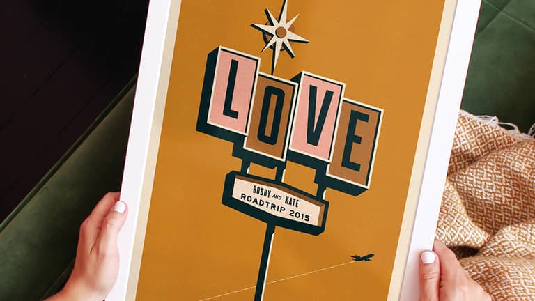 With a joint love of damn fine paper goods, Bobby & Kate Evans started the now award winning Telegramme Paper Co. in London in 2014. Now based out of their studio by the sea in Margate, they apply their unique, mid century inspired illustration style to personalised prints, creating the most beautiful custom prints for every occasion.
