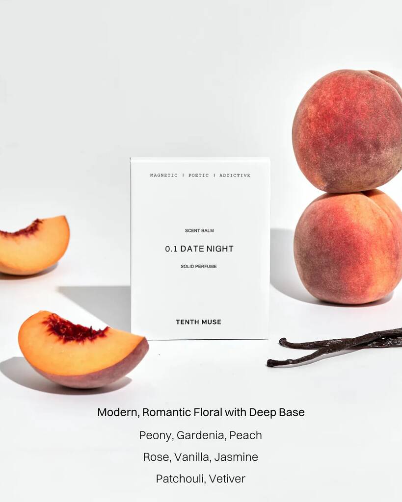 Date Night Notes:Top notes: Peony, Gardenia, PeachMiddle notes: Rose, Vanilla, JasmineBase notes: Patchouli, Vetiver