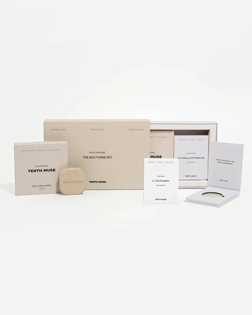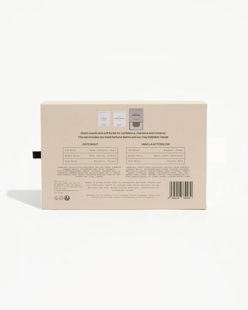 This set includes:x1 Date Night Solid Perfume Balmx1 Vanilla Afterglow Solid Perfume Balmx1 Clay Refillable Vessel