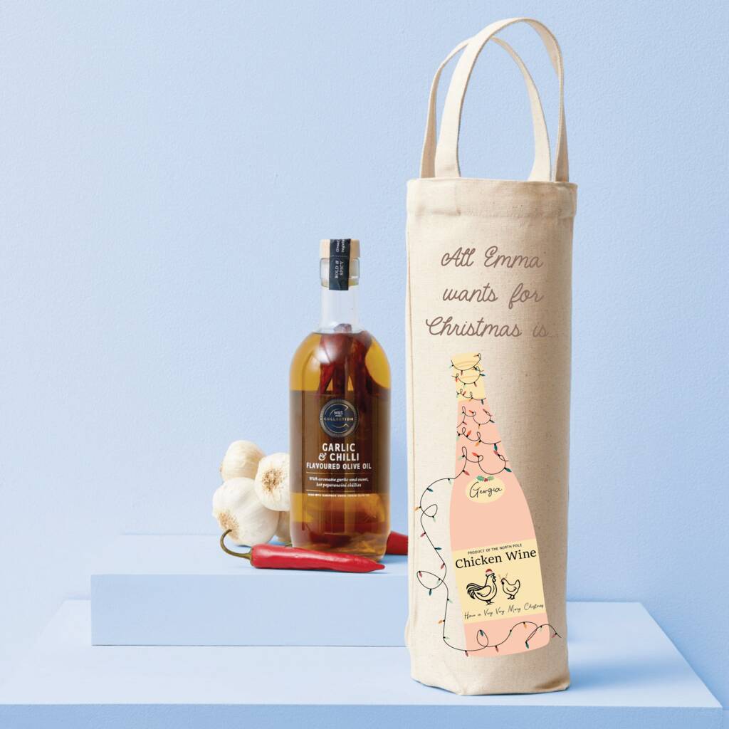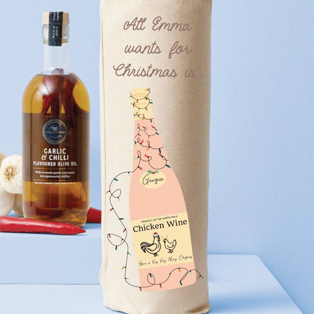 Personalised All I Want For Christmas Is Chicken Wine Bottle Bag