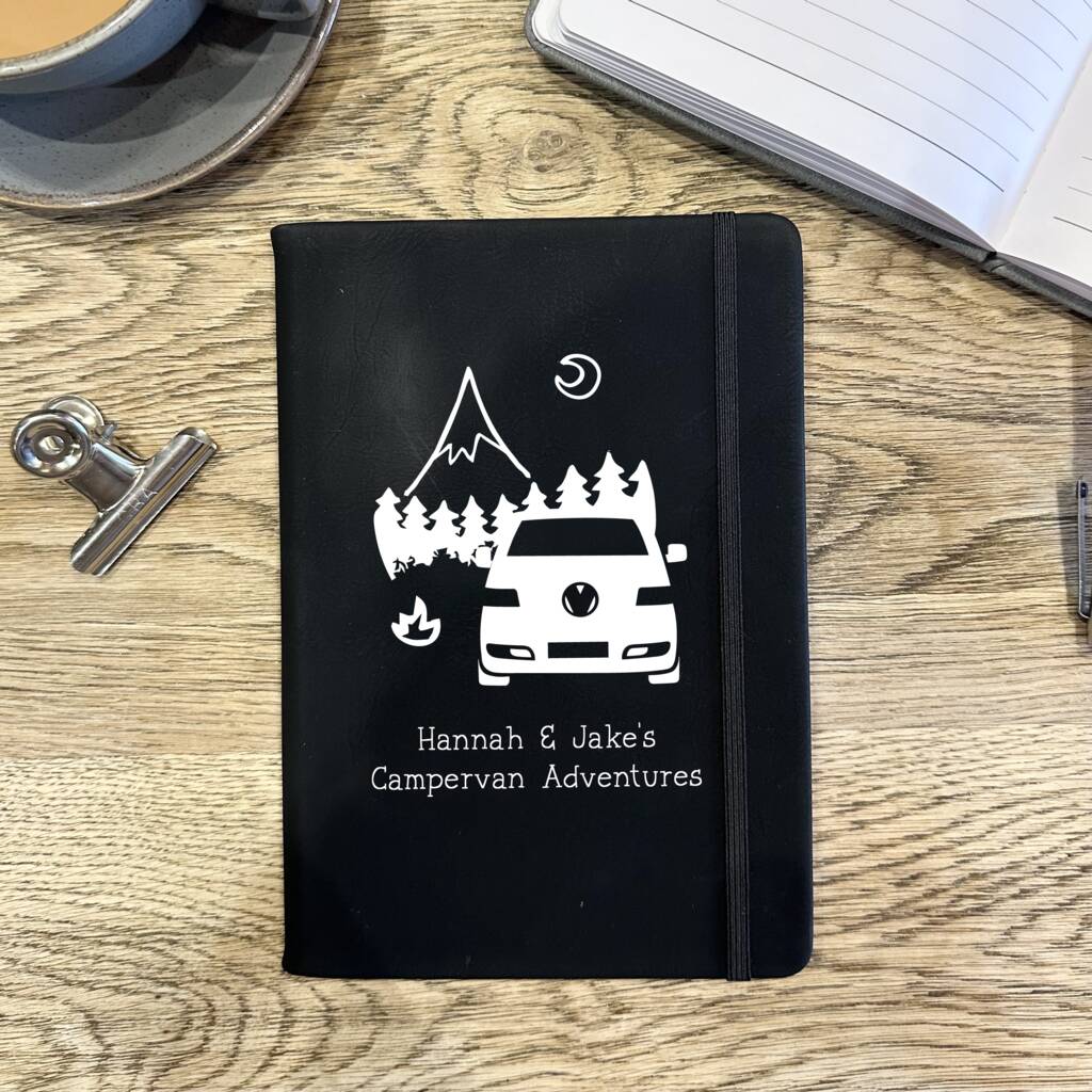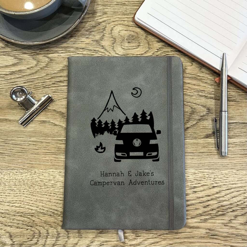 This engraved, faux leather covered hardback personalised travel journal is the perfect place to store all those extra special campervan travelling memories.