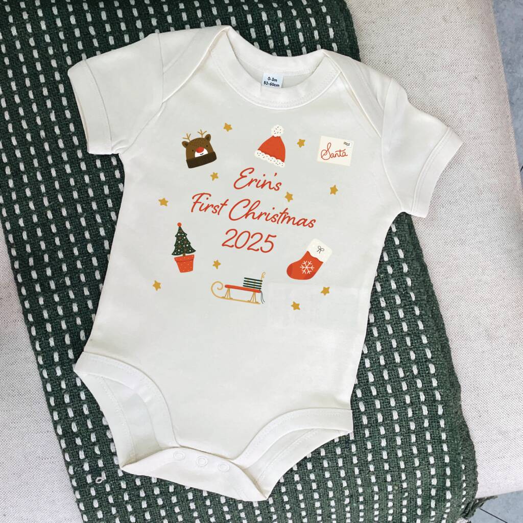 Personalised Christmas Objects Baby's First Christmas Babygrow