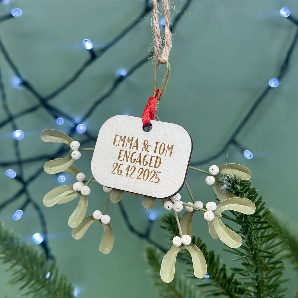Personalised Metal Mistletoe Engagement Bauble